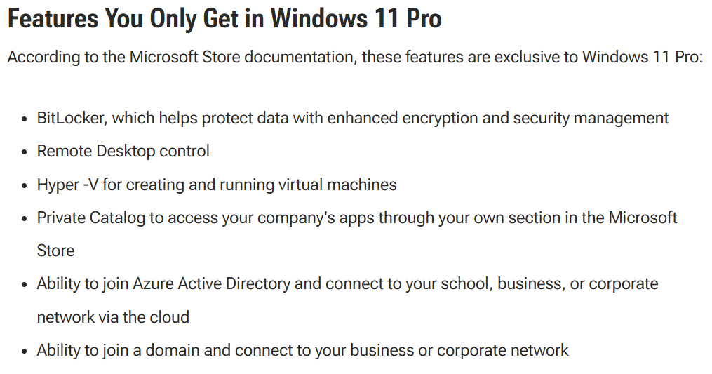 Ich habe die Home Version, und bin sehr zufrieden damit. Du musst dich halt etwas im Internet umschauen & dich fragen: Benötige ich die Features die Pro mir bietet, bspw.: Ich hatte zuvor Win 10. Das Upgrade auf Win 11 Home war im wahrsten Sinne des Wortes ein Kinderspiel. Lief ohne Probleme durch. Zu deinen anderen Argumenten: Ich kann dich verstehen. Ich bin aktuell dran meinen PC hier nur fürs Zocken auf Windows zu lassen. Meine anderen beiden Laptops aber auf LMDE umzustellen. Und diese für alle anderen Arbeiten zu nutzen.