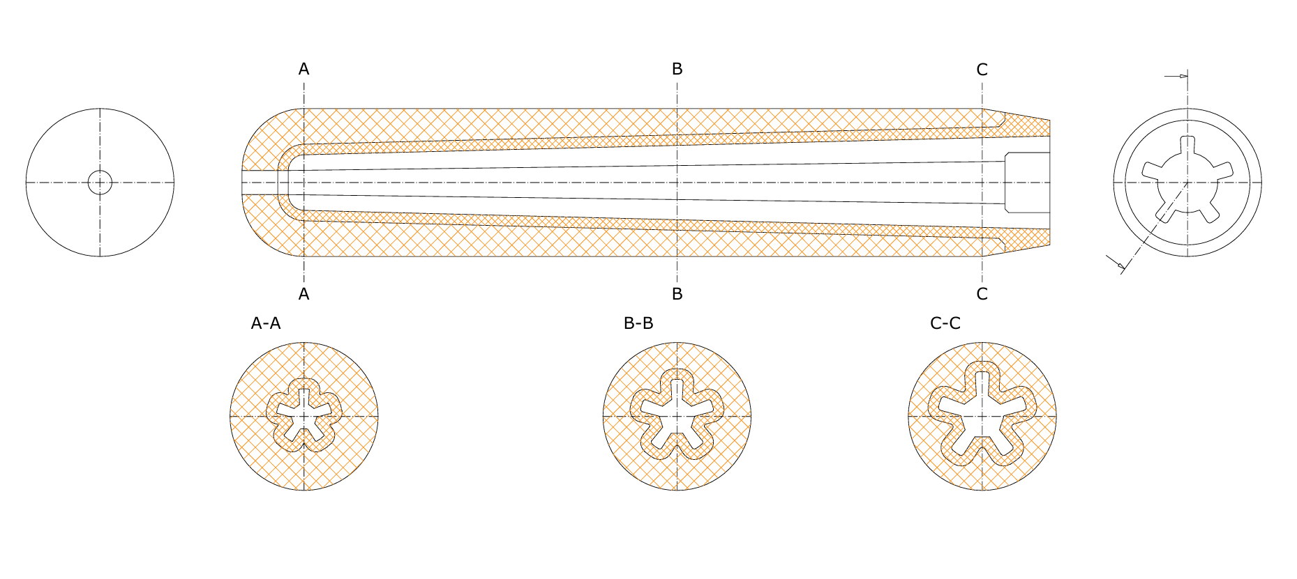 Unless I made some crucial mistake, I hope I didn’t, this is how propellant grain in Mk78 Mod.0 motor should looked like Concept of Hawk’s motor like said, trick is in usage of exactly same propellant in sustain stage (ANP-3196-1), propellant which can burn stable at very low chamber pressure and which burn very slowly. Without aluminum and filled (significantly) with burning catalyst, in this case not with oxamide but with nitroguanidine. Air launched motor which if I’m not wrong has the biggest difference in thrust between boost and sustain stage, of all. Indeed unique one.