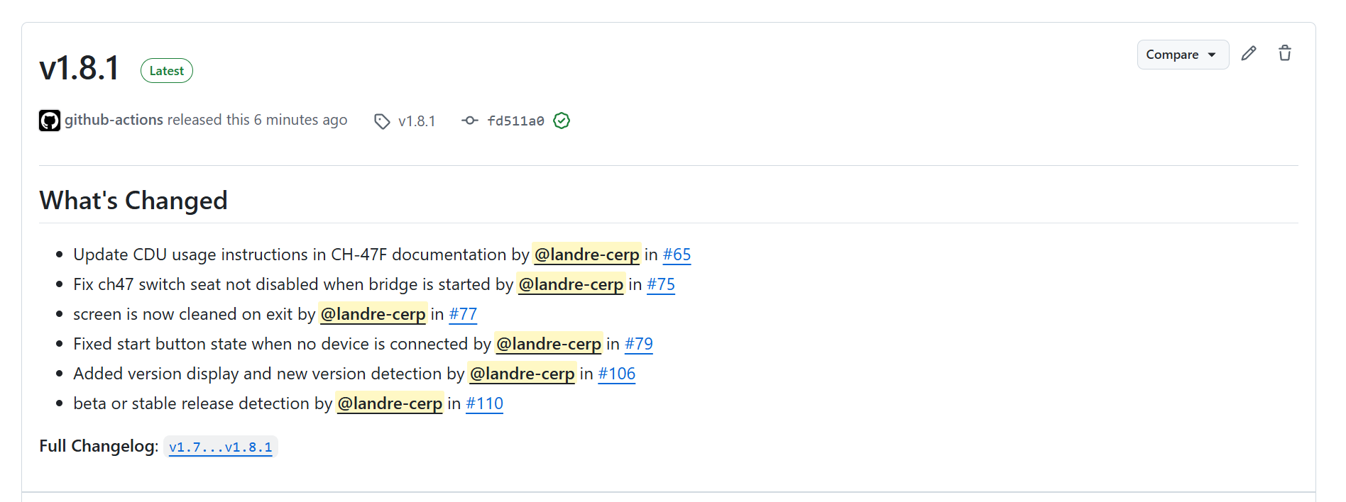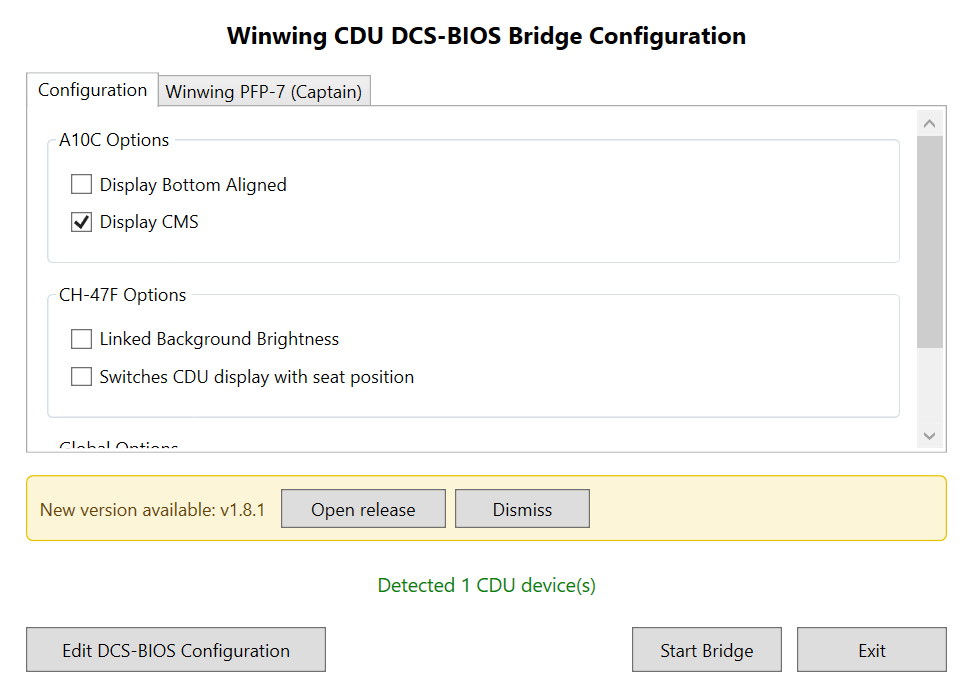 I added a new version detection https://github.com/landre-cerp/WWCduDcsBiosBridge/releases should show this kind of message Note : It's easy to test a new version without compromising the one you're running. Just unzip in a different folder (for ex wwcdu-version ) and you can test the new one easily and switch whenever you feel it's ok for you.