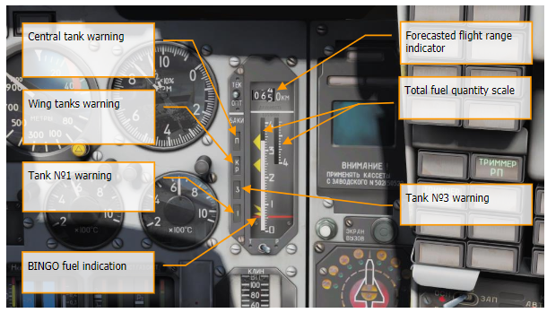 You have a KР indication on the fuel pannel, for "Концевой Расход". It's a kind of Bingo indicator. It's not supposed to be indicated on the HUD for 9-12 version, but maybe that's a beginning of explanation?