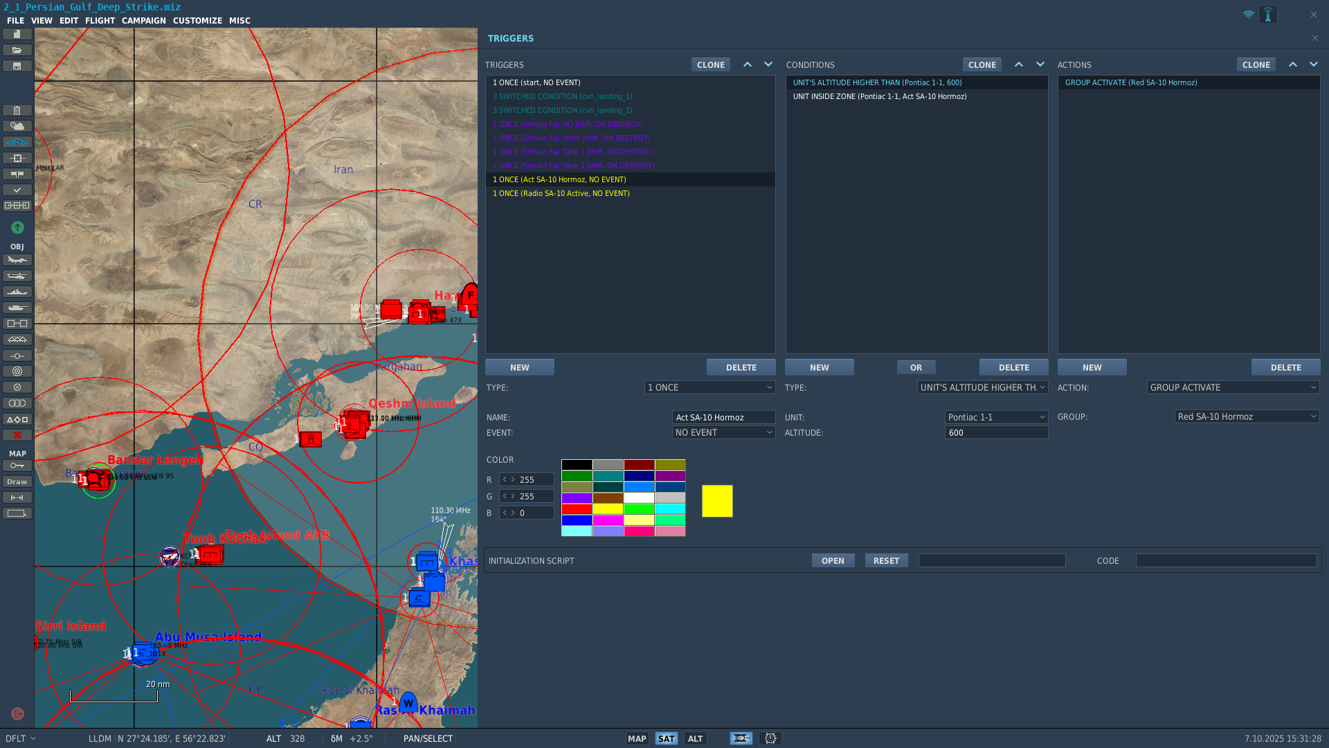 Thanks both of you but it still doesn't work, though. SA-10 won't spawn this way when I enter the zone above 600m. What I did: