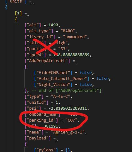Oh, I didn't see that. The prefix C (or A or B or other) is only used on certain maps, for example PersianGulf. In Causacuse, it's not necessary, so you should write it like this: parking_id = { [""] = {1, 31}, }, For comparison, I'm sending you a parking that uses the prefix C.