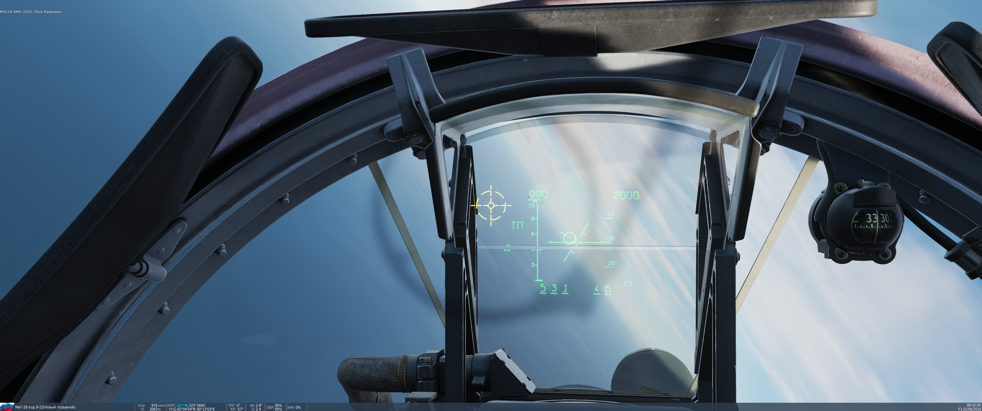 Еще заметил что пуск Р73 в горячем старте в воздухе не возможен по истечении 1 минуты после старта миссии, то есть у нас при старте оружие не готово и скорее всего оно охлаждается. Также не возможен пуск ракеты без предварительного захвата КОЛС, если захватывать с помощью тгс ракеты. Потом уже можно и тгс ракеты наводить и стрелять Так же почему то сектор захвата ракеты ограничен +-45 гр. В гс3 миг29, проверял сегодня, команда ПР выдается тоже в этих пределах, но можно снять ограничение на пуск и стрелять вплоть до+-60гр сколько шлем по азимуту предоставляет