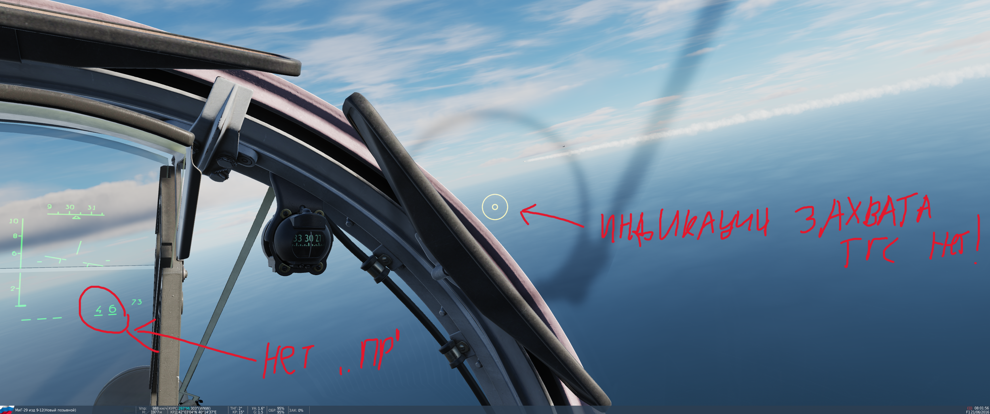 Приветствую вирпилов и разработчиков, после последнего апдейта заметил что при использовании ракет Р73 в режиме ШЛЕМ, когда смотришь на цель более 30 градусов относительно носа и пытаешься произвести захват, то на шлем ничего не выводится и нет звукового сигнала и надписи на ИЛС "ПР". Хотя при этом появляется на ИЛС номер ракеты которая захватила цель и ее можно пустить. nullnull R73andHELM.trk