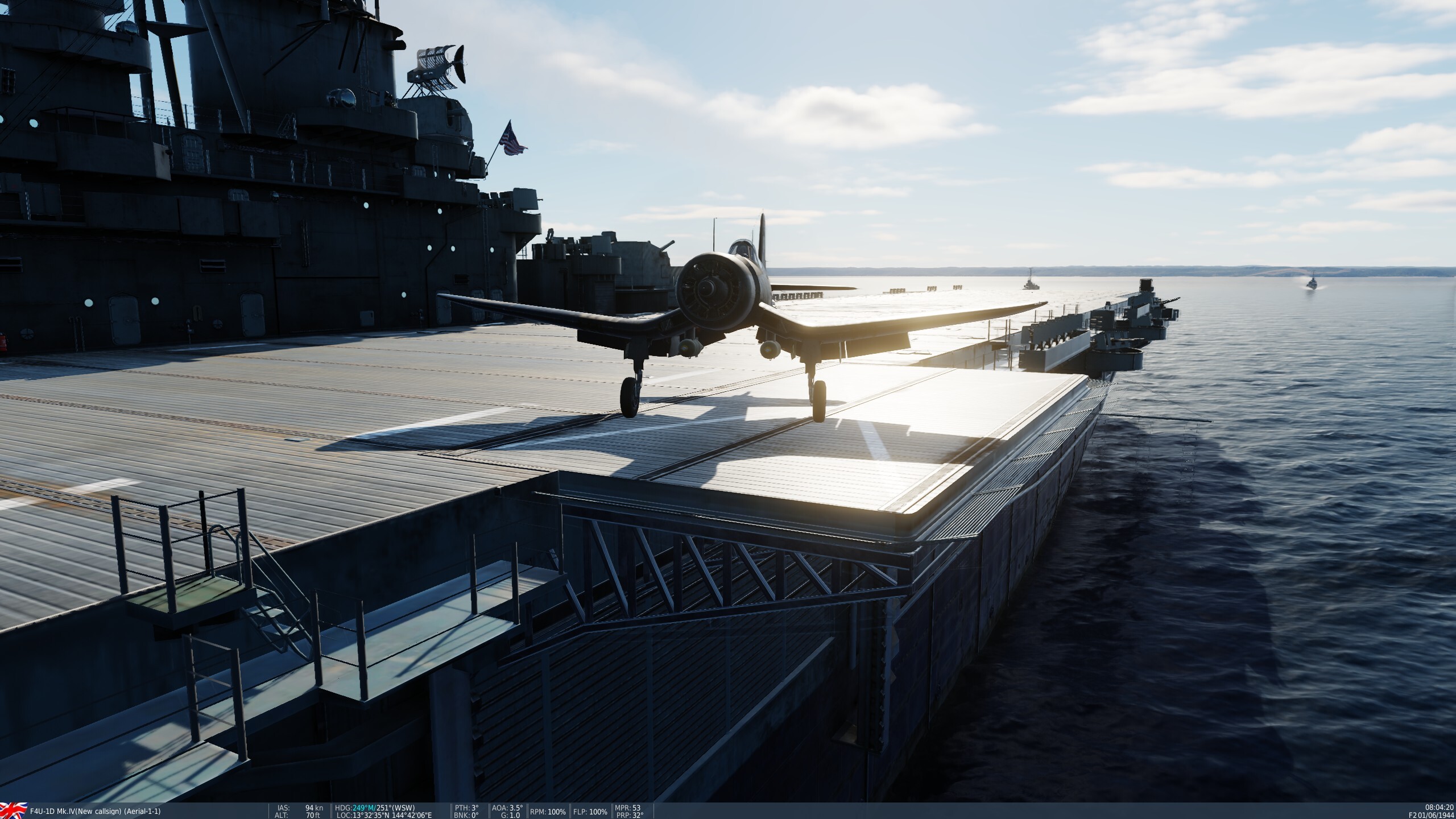 Early, Angled Flight Deck experiments, nobody new about. Added 2 500lb bombs. Need to gas axe that handrail.