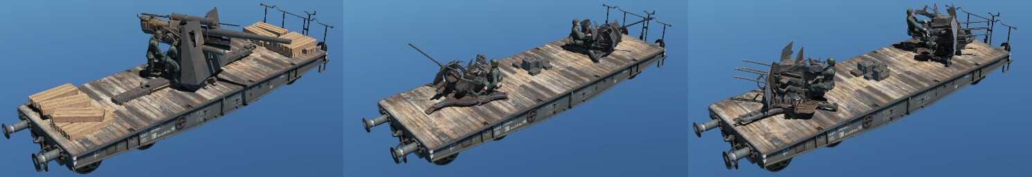 Current Asset Pack List (subject to change)waterman replied to NineLine's topic in DCS: WWII Assets Pack Why are the 3 WW2 Addon German Flak Wagons still hidden after 7 years from users who paid for them ? Flak 18 + Flak 30 + Flak 38 They are all are great models and even have animated Guns and German Gun Operators. For several years Trains cannot even be Deactivated anymore as they leave the tracks and float around - Reported but is this ever going to be fixed. Using Ai Trains is a VERY BAD user experience while this problem still exists. Please Fix This Problem. Here is a work around if you dont want to Die waiting to use your Flak Wagons - Anyone who wants to use them in Trains its here uploaded by "titi69" in the user files section. Its very sad that users have to become hackers to use what they have already paid for 7 years ago ! https://www.digitalcombatsimulator.com/en/files/3345513/