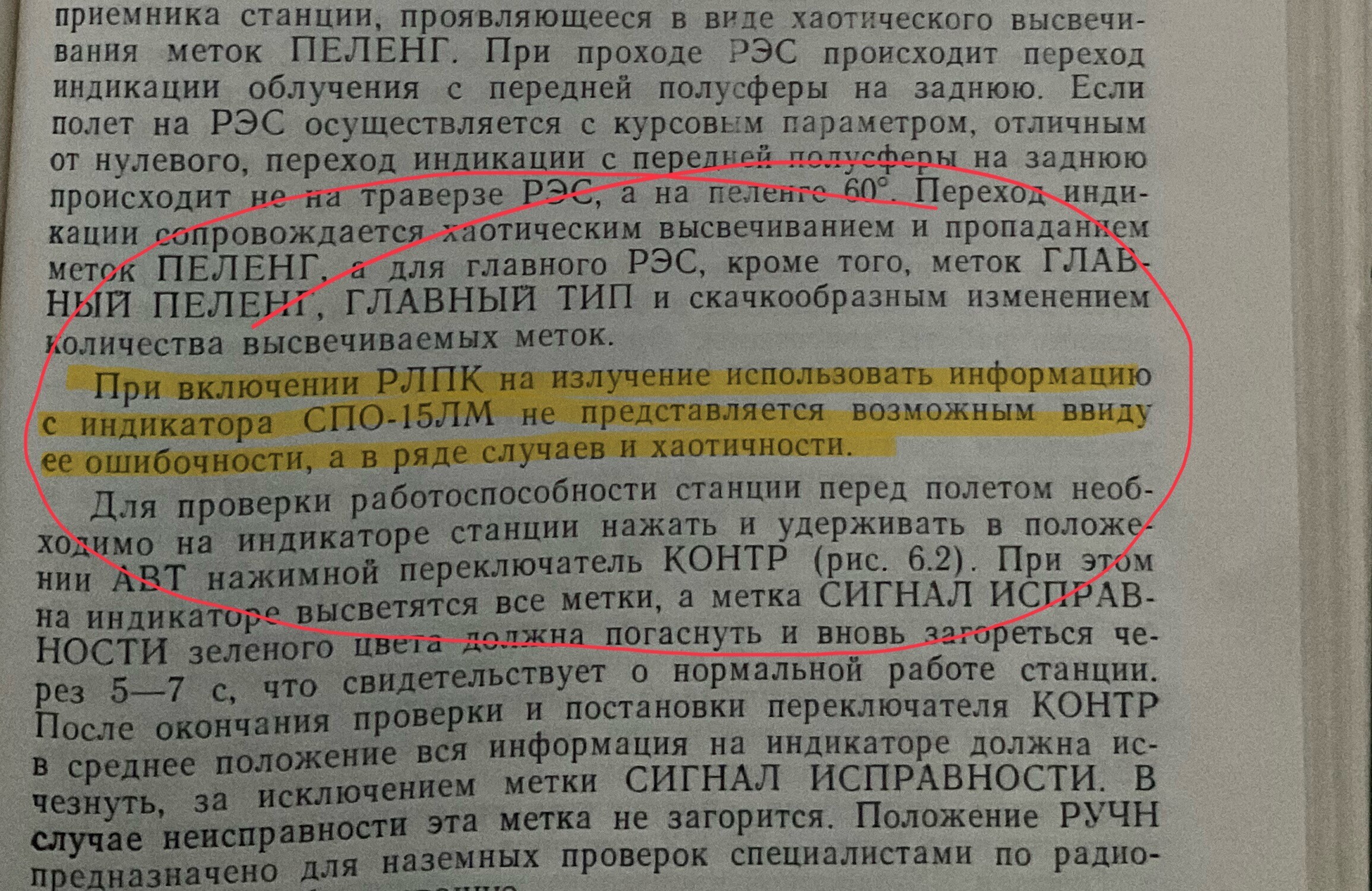 It's not off-topic. I was just reading a Russian forum on this issue and came across an interesting document. I am translating to you what is highlighted in yellow, but in the translation version it sounds softer. than if you correctly convey the meaning in Russian using obscene expressions.) "When switching on the radar for radiation, it is not possible to use information from the SPO-15LM indicator due to its inaccuracy, and in some cases, its randomness." It shows errors and chaos occurs on the device!