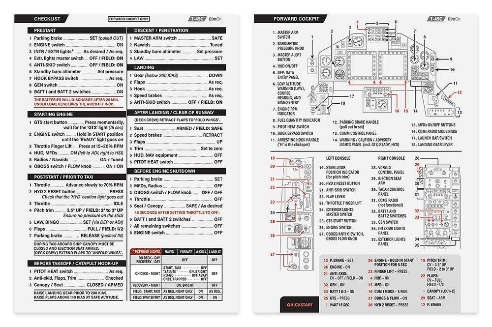 v1.2 released: Added: ATC Radios (only UHF frequencies work for now) Added: BASIC WIP multicrew sync: -This is experimental and has many limitations -MC sync is only one-way, when the front pilot is in control, the rear cockpit will sync. When the rear pilot takes control, there is no longer any sync -The only items that sync are: Flight controls, throttle, canopy, hook handle, and landing gear handle Added: OBOGS System Added: Pitch & Roll Key binds Added: Inner, middle, and our marker lights Added: Rudder tab animation movement Added: Controls Indicator Added: Training missions (thanks to Rudel_chw) Added: Snap view for numpad 0 Improved: Warning and Caution Light system. Master Alert button and tones now function Improved: Low Altitude Warning (LAW) now has associated tone and MFD/HUD indications Improved: BINGO now has associated MFD/HUD indications Improved: Radio preset channels can now be used Improved: Default starting position of many switches and dials Improved: Wheel friction adjusted Improved: Flight model overhauled -Pitch buck implemented -Max speed more accurate -Stall behavior improved -Transonic pitch transient added -Speed brake causes pitch up and light turbulence Improved: HUD: -Symbology improved, symbols and text adjusted -command steering markers now limited to edge of heading tape -CDI steering arrow added -A/A gun sight (note: LAC and RTGS are currently the same) -HUD Auto Brightness available Improved: MFDs: -MFDs now default to ADI and HSI page on hot starts -CRS and HDG adjustment on HSI page can now be held down -HSI PLAN arrow now always at edge of compass ring -HSI and DATA page show waypoint name (if entered in mission editor) -MFD brightness now affects all elements, and ADI retains color when dim -Waypoint DATA page funtional, waypoints and waypoint offsets can now be changed -GPS page functional, ICAO airfield points can be transfered into waypoints -Sequential waypoint lines (note: lines are solid and not dashed due to limitations for mods) -Offset waypoints -Stores page target wingspan and height entry -VREC, BIT, and TRNG pages (non functional) -Time to go calculations for TACAN and Waypoints. No more jittering of numbers -ASC-013 upgrade is being implemented. This includes: -HSI scale now 5-320nm -Up to 61 waypoints can be used -TACAN and VOR symbology now magenta and green -More additions to come in future updates Improved: Altimeter dials more readable Improved: Takeoff trim is set for ground hot starts Improved: Missing icon images (thanks Fresh) Improved: Mission editor name changed from "T-45" to "T-45C" Improved: Engine and GTS system. -Thrust, EGT, fuel flow more accurate -Hot starts now possible -ENG page fully functional Improved: Rudder knob now springs back to center. Keybinds adjusted accordingly. Fixed: Altimeter now reads proper barometric altitude (was always using 29.92 altitude) Fixed: HSI wind direction 180 degrees off Fixed: Carrier TACAN not working (mission file format was changed) Fixed: VOR, TACAN, and Waypoint nav using true north and not magnetic north Fixed: Removed duplicate default keybindings Fixed: Engine windmills at 1% when parked, preventing repair Fixed: Console Lights always on Fixed: Engine Start Switch keybind conflict. New key bindings Fixed: Spin direction indicator was showing laternal acceleration, now shows yaw rate Fixed: Brakes still worked with zero brake hydraulic pressure Fixed: AI aircraft too slow on takeoff Fixed: Anti-skid too strong Fixed: Canopy normal texture change to prevent canopy glare Fixed: Hook Bypass switch is clickable again, and properly functions Fixed: If emerg gear lever is used, next mission load gear still emergency extends Fixed: Anti-skid light now extinguishes when gear not down Fixed: Battery voltage incorrect at 28v and not 24v Workaround: Fake wing fold available for supercarrier deck crew by raising/lowering flaps Added Keybindings: -Supercarrier keybinds -Master Arm else safe -Seat arm/safe -Speed Brake forward/aft else center -TACAN power and channel knobs -VOR/ILS power and frequency knobs -Radio tuning and control knobs -Master Alert button light https://www.mediafire.com/file/v4fqcx95ynicq72/VNAO_T45.zip/file39 points