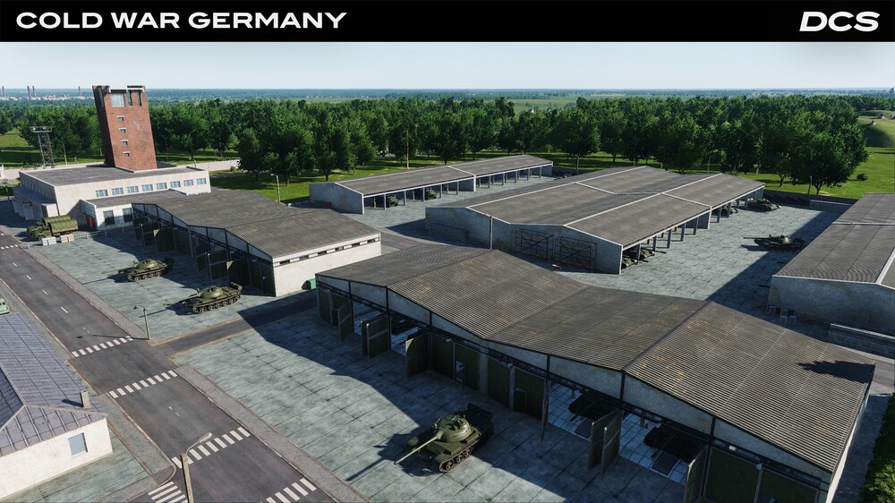 Guten Abend, Europa! / Guten Morgen, Amerika! When we were just planning "Cold War Germany", it was immediately clear that we needed to make not just a map, but something more: a place where you can realize all the possibilities of the DСS World. In addition to the fact that we made a large number of airfields on the map (more than 59), we scattered many helipads throughout the map, so it will be equally interesting for airplane and helicopter pilots. Access to all points of interest is maximum - you can take a short flight. And this seemed not enough ... Some real Cold War scenarios assumed massive ground battles, so we tried to make the map interesting for tanks as well: tank military bases and training grounds were added, where you can practice tactics and shooting. Get ready, we will show you a lot today. Let's start with the basis of our map - the airbase. The place from where you go on a mission and where you will definitely return. Airbases are the heart of any military campaign, and on the "Cold War" map they are recreated with historical accuracy. Our screenshots show key NATO and Warsaw Pact bases. Experience the atmosphere of West Germany (FRG - Federal Republic of Germany) and East Germany (GDR - German Democratic Republic). Get ready to take off! Gross-Dolln (Templin Air Base) (GDR) - Soviet air base. The field was special not only because of the very spacious facilities. It also had an auxiliary runway, which ran from the airfield in a southwestern direction, with a remote dispersal area at the end. Buchel (FRG) - Büchel Air Base is a military air base of the Luftwaffe. Spangdahlem (FRG) - is a NATO air base is used by the United States Air Force (some of you know her well). Wittstock (Alt Daber) (GDR) - Soviet air base. Soviet pilots had warm memories of this place. The Soviet pilots had warm memories of this place. And of course the children who lived nearby.42 points