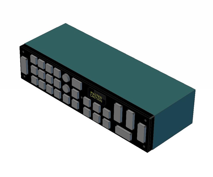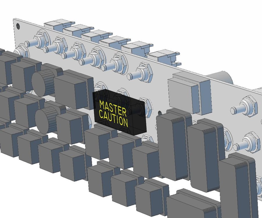 Where does the time go!?! Work has been keeping me busy and slowed me down on the pit project. :( However, I have completed (hopefully :D) my UFC design. If all goes well, I hope to fabricate and assemble all the parts in the next week or so. I'll use standoffs to hold the backplate at the correct distance so all the UFC buttons to rest on top of the pushbutton switches. If there's any problem with that design, I'll just drill a shallow recess into the bottom of each button so that it rests on the switch actuator. I hope to use an illuminate pushbutton behind the master caution button so that I can back light that. Backlighting the rest of the buttons and the panel will be possible, but probably not done this time around.