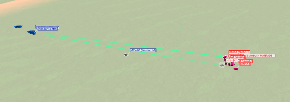 Update: The Task is no problem anymore, now it worked on the first try. I just took a look at the Track file and noticed something REALLY MINOR that you might still want to know about, idk. When the center convoy spawns, they engage the hostile bmps the player is supposed to deal with for a short time. In my experience they usually take care of at least one bmp before holding fire, which may make the radio message talking of "3 bmps to kill" a little confusing. I assume that the 2 seperate Warriors are supposed to get killed and represent the casualties that are mentioned in the radio call and the main convoy is supposed to hold its position. However, the 2 seperate Warriors survive the bmp encounter and just drive past, while the convoy enages the bmps from a distance. Not sure if you count this as a bug or if it´s working as intended. -