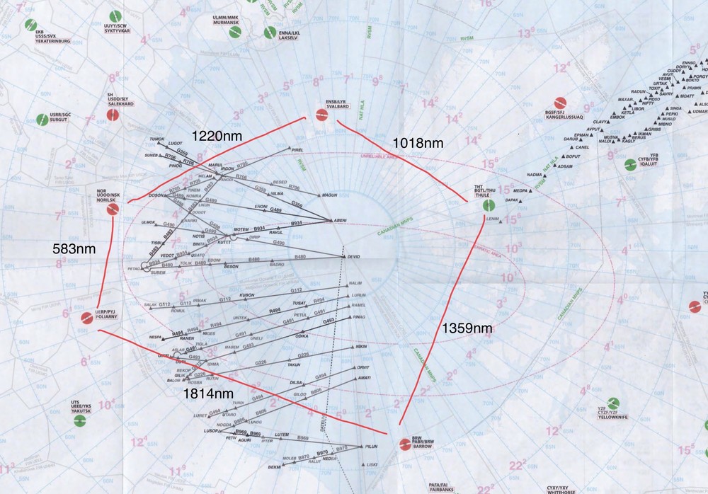 For a North Pole map, the map size would have to be enormous just to include a handful of airports. I think the distances between airports would surprise you, and therefore make for some extremely long missions, not exactly to everyone’s taste. Great for AAR practice however . (Granted, Alert is not on the map below, but as a ~1500m dirt runway, it’s not exactly usable by everyone.)
