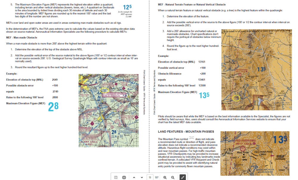 22. Slightly incorrect. It is actually the Maximum Elevation Figure, and dose not ensure the legally required minimum clearance above terrain/obstacles. Some companies, such as Jeppesen, add the required additional terrain clearances (1000ft for terr/obs below 5000ft, & 2000ft for terr/obs above) to the MEF figure to obtain their published MORA (Minimum Off Route Altitude) figures.