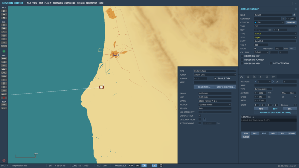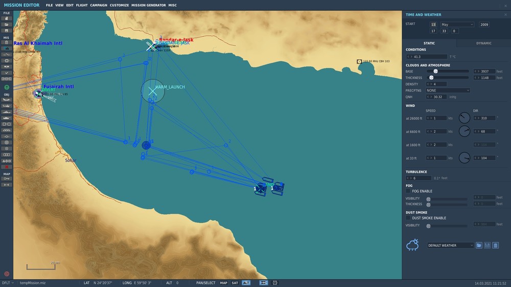 In the mission, the player starts from a moving carrier in the persian gulf, see MissionParameters.jpg & FA18CBandarStrike.miz.