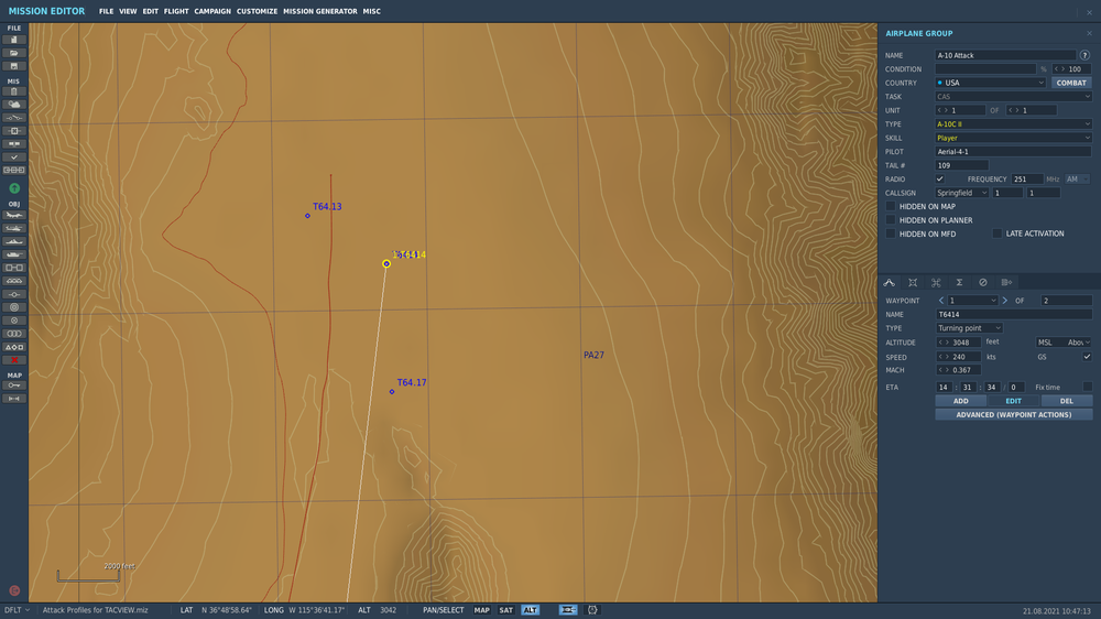 Hi, When I use numbers to name a waypoint, the A-10C automatically add a unit to this waypoint, either in FLT PLAN or MISSION. In my example, the waypoint name T6414 in the ME display T6415 in the HUD. See track in attached. Thanks, Vincent Wrong WP Number.trk