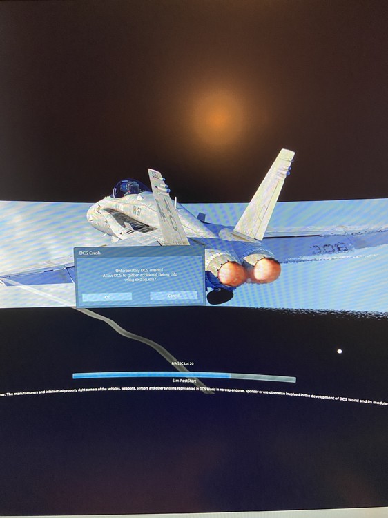 Hi guys I have just carried out the update to 2.7 and every time I get to the load screen the game crashes. Iv have took a picture of the crash report which is attached. Does this problem happen to anybody else. DCS was working perfectly fine before I carried out the update to 2.7. Thanks in advance for your help. Also there is no sound in the main menu screen. It lets me carry out a free flight in Caucus map and I get sound there, I can here the engines and clicking sound when I press buttons, but there is no sound when I use any of the comms menu (ATC, Wing man) never had any issues in the past updating from 2.4 - 2.5