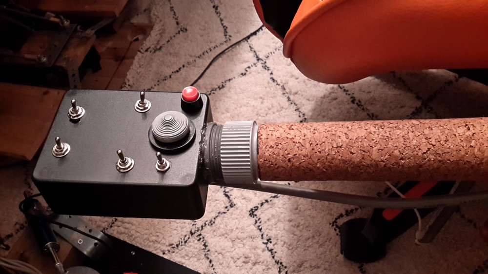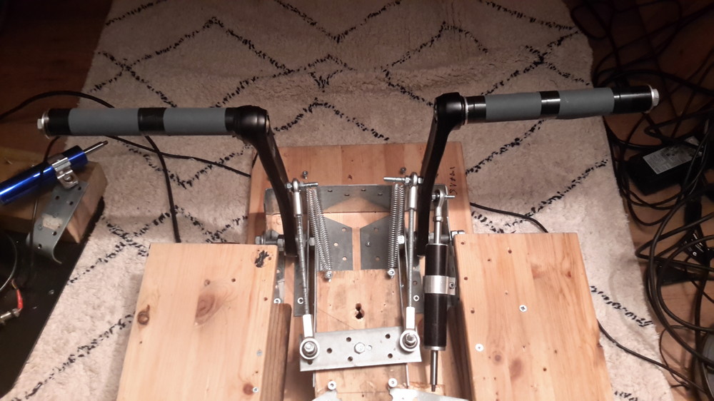 Getting close to finishing my Huey collective. Has a working throttle with a garden hose thing for friction lock. I've used a M5 threaded rod to put trough but I would recommend a M8 or 10 due to the friction method. Add a extra nut thats lubed upwith a bolt under. That way you have a simple way that anyone can do to add pressure. For the clamp to hold the collective tube I've used the soft steel roll with holes in it. That's also used to hold the weights for balance. All buttons and axes are connected to a bodnar board. Switches are from ebay. Pots from bodnar For the pedals most parts can be picked up at the hardware store and the bike crank arms on ebay