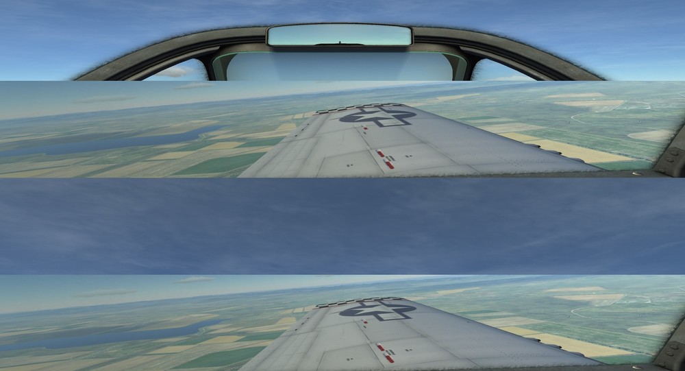 Having some issues with camera setups in DCS 1.52 Will give this view on the top monitor (see attachement) 2 cameras on each side view will give the same but in vertical _ = function(p) return p; end; name = _('5 test Screen'); Description = 'Configuration with 3 identical monitors each with its own camera' Viewports = { Left = { x = 0; y = 0; width = 1920; height = 1080; viewDx = -1; viewDy = 0; aspect = 1.777777777777778; }, Center = { x = 1920; y = 0; width = 1920; height = 1080; viewDx = 0; viewDy = 0; aspect = 1.777777777777778; }, Right = { x = 3840; y = 0; width = 1920; height = 1080; viewDx = 1; viewDy = 0; aspect = 1.777777777777778; }, top = { x = 5760; y = 0; width = 1920; height = 540; viewDx = 0; viewDy = 1; aspect = 3.555555555555556; }, top_top = { x = 5760; y = 540; width = 1920; height = 540; viewDx = 0; viewDy = 2; aspect = 3.555555555555556; } } UIMainView = Viewports.Center Running this config with 7 cameras will result in a crash with no error code _ = function(p) return p; end; name = _('max Screen'); Description = 'Configuration with 3 identical monitors each with its own camera' Viewports = { Left = { x = 0; y = 0; width = 960; height = 1080; viewDx = -2; viewDy = 0; aspect = 0.8888888888888889; }, Left_back = { x = 960; y = 0; width = 960; height = 1080; viewDx = -1; viewDy = 0; aspect = 0.8888888888888889; }, Center = { x = 1920; y = 0; width = 1920; height = 1080; viewDx = 0; viewDy = 0; aspect = 1.777777777777778; }, Right = { x = 3840; y = 0; width = 960; height = 1080; viewDx = 1; viewDy = 0; aspect = 0.8888888888888889; }, right_back = { x = 4800; y = 0; width = 960; height = 1080; viewDx = 2; viewDy = 0; aspect = 0.8888888888888889; }, top = { x = 5760; y = 0; width = 1920; height = 540; viewDx = 0; viewDy = 1; aspect = 3.555555555555556; }, top_back = { x = 5760; y = 540; width = 1920; height = 540; viewDx = 0; viewDy = 2; aspect = 3.555555555555556; } } UIMainView = Viewports.Center I have to give you credit for absolutely fantastic multi monitor performance! dcs.log.txt