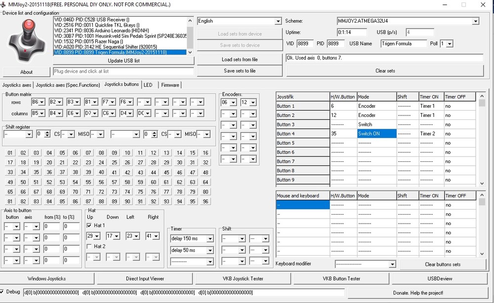 It was just for testing different options to see if anything worked. As for the version, I had some issues with encoders on the newer stuff. I don't really see any options that would make a difference either way. Everything is set and fully working apart from button 35 (the push button) being pressed everytime I press one of the directional on the funky switch