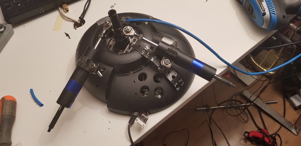 Some WIP Drilled trough the stick and attached a threaded rod then bent it. Sadly i was stupid enough to grab my extension while bending the rods and broke the rod so ive had to sort that.. argh Added the pocket bike dampers these are drained and replaced with nyogel 767A due to stickiness but they are just to weak now IMO and cant hold the stick on the outer edges. I plan to make the stick have less throw anyway so its not a big deal but could be an issue when the VKG grip comes. Might need some modding and i got some other dampers on order but i suspect the could be to small and a little weak too but they cost like 3£ so not a biggie. For now this will do great Will be using the holed bands to add stability to the rods sticking out of the plastic and will be using nuts so i can adjust the tension up and down. Should give enough stability.