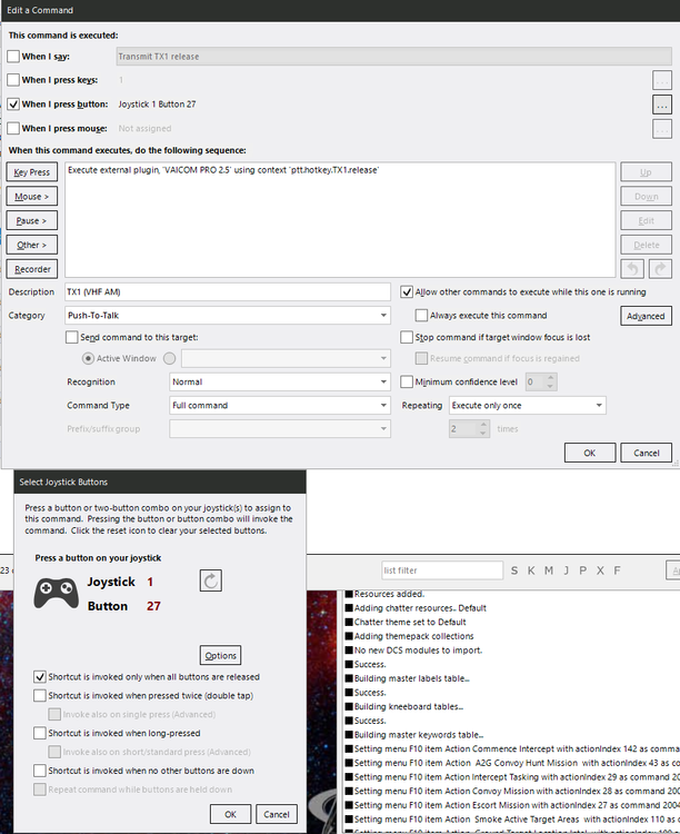 Without DCS running, it behaves 'normally'. In the image below, DCS is closed, I've then closed and re-opened VA then pressed the PTT button twice. I've checked with the rotary switch in NRML and behaves the same. I've attached the image of the TX1 release showing that the "Shortcut is invoked only when all buttons are released" is ticked. Could it be that the profile is corrupt somehow?