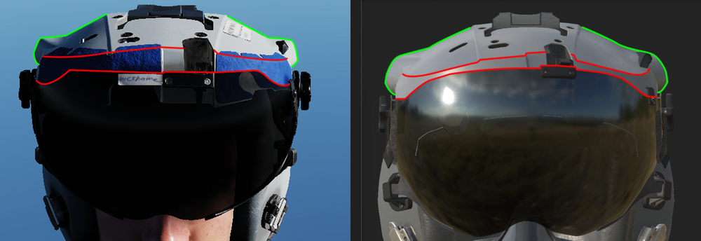 Greetings. I have noticed some inaccuracies with the F-16's JHMCS unit of the helmet. And since you guys are probably going to revisit the USAF's pilot model for the upcoming Full Fidelity F-15C I would like to point out these to the modellers so they can maybe fix it for the F-16 and F-18 or maybe take it into account when making the F-15's pilot model if revisiting the pilot models for the 16 and 18 is too much trouble. For That I will compare the in game shell to one that is completely 3D scanned, thus making it much more accurate. 1st - the shape is off by a bit. The sides of the helmet are supposed to be a bit more rounded. The shape of the one we have in game is a bit more pointy, when that shouldn't be the case. I have highlighted the part I'm talking about in green color for you to see it in more detail and see that what I'm talking about actually applies.Also talking about the shape, you can't help but notice how big the helmet's "forehead" (The gap between the visor and the top of the helmet highlighted in red) is in game when compared to the 3D scanned version of the helmet). The visor doesn't go that far down in real life. So it would be impossible to find such a huge gap in real life examples. 2nd - The velcro on the top of the helmet shouldn't be there. The helmet represented is an HGU-55. This velcro is a modification present on the HGU-68 the US Navy uses, not the Air Force, which makes me believe this was a leftover from the Hornet's pilot model mesh. I think this has already been reported, but just making sure to include it here in case it hasn't. Moreover, there's another much less important issue with the helmet that I think it's worth mentioning here. The blue felt visor protector cut is a bit too big. This is a mod made by the squadrons themselves to prevent the visor from getting scratched on the top of the helmet. Now, they don't normally look like in game, where you have it going all the way to the top of the helmet. In real life it normally ends where right near where the top of the helmet would start, as you can see here: Now, I'm well aware that this is mostly nitpicking, but I figured that since the sim is so well done when it comes to detail, and ED takes pride in that, I could help achieve an even further level of fidelity when it comes to the pilot models, since they are very well done as well (and still work in progress according to ED). That's mostly it, thank you.