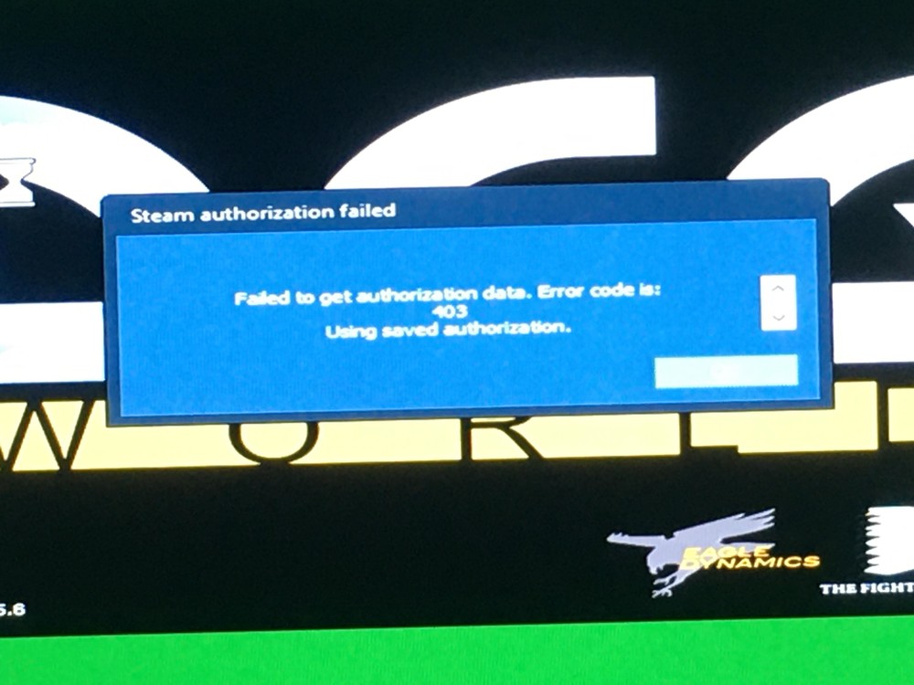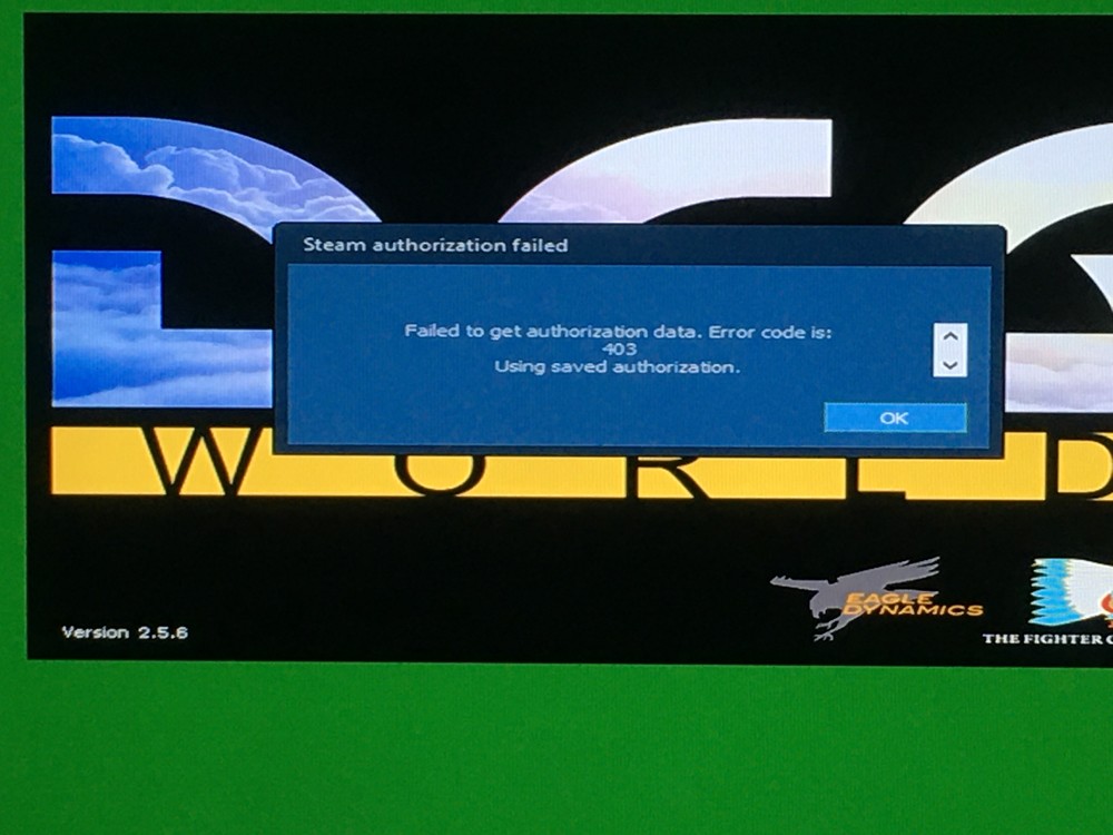 Thanks for the advice. I believe i have "gone offline" correctly via steam, in the top left corner(see attached photo). Is this what you meant? I still get the same result when i try to start DCS via Steam or the stand alone DCS icon. It initially says error code and "steam authorisation failed." (photo attached). Then shortly after i get the next one; "Authorisation failed," with the list of all the aircraft valid for 3 days(photo attached). Prior to latest update i had never had these errors, it just started, and if i didnt go online for several weeks or even months i never had a problem. I literally had the ethernet cable unplugged. Any further advice? Thanks in advance.