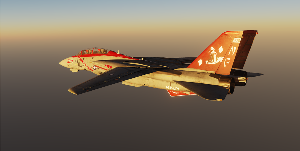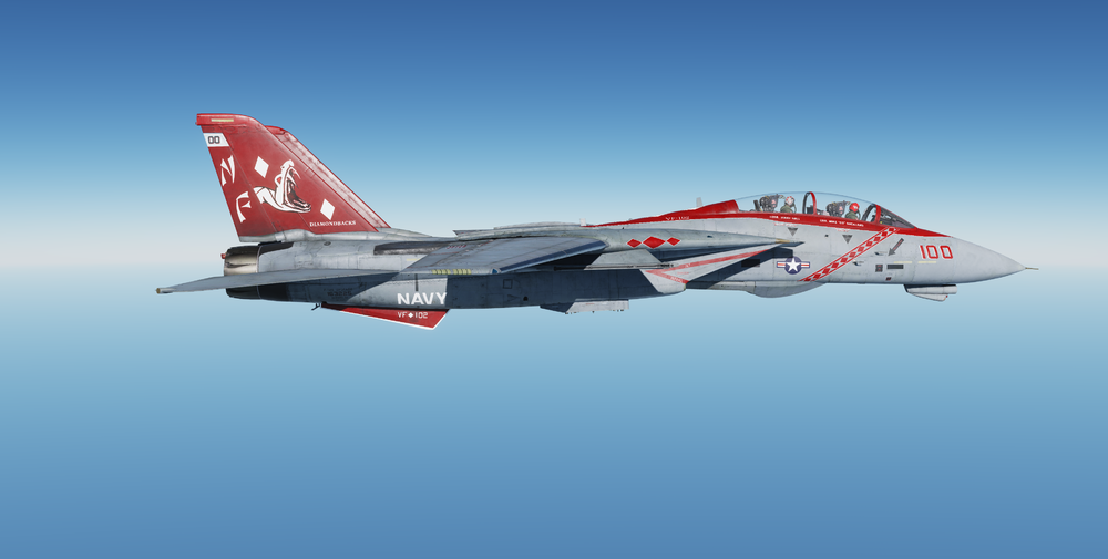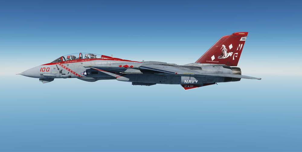 On September 22, 2006 The Navy officially retired the F14 from service, just after the VF-102's 50th anniversary. Sadly, while the VFA-102 F/A-18's received this beautiful anniversary livery, no F-14s ever did. This livery is my tribute to the 102, and to the truly amazing Grumman F14 Tomcat. Nearly every part of this livery was done by hand, including the BUNOs and Numbering. I also added both the AB and NF tail codes to pay tribute to long and rich service history of this Squadron. It took an incredible amount of time and effort, and I truly hope you enjoy it as much as I enjoyed creating it.