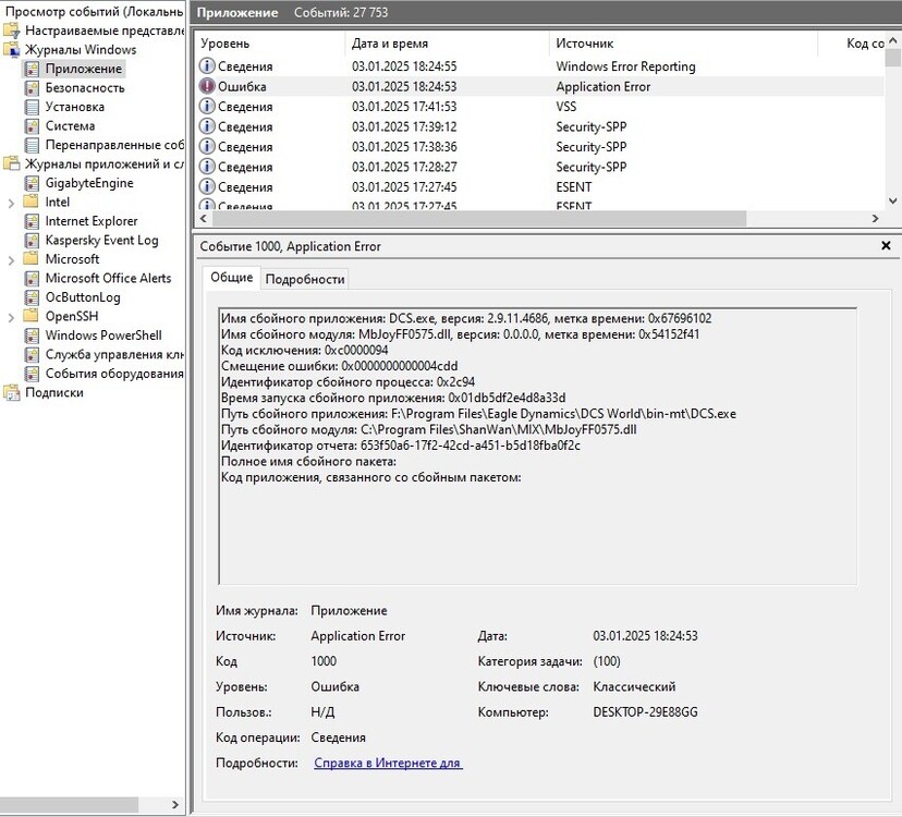 Коллеги, появилась во такая проблема, кто знает что это может быть ? Ругает вроде бы какой то Mbjoy Лог прилагаю null dcs.log-20250103-152433.zip dcs.log.old dcs.log cef_log.log