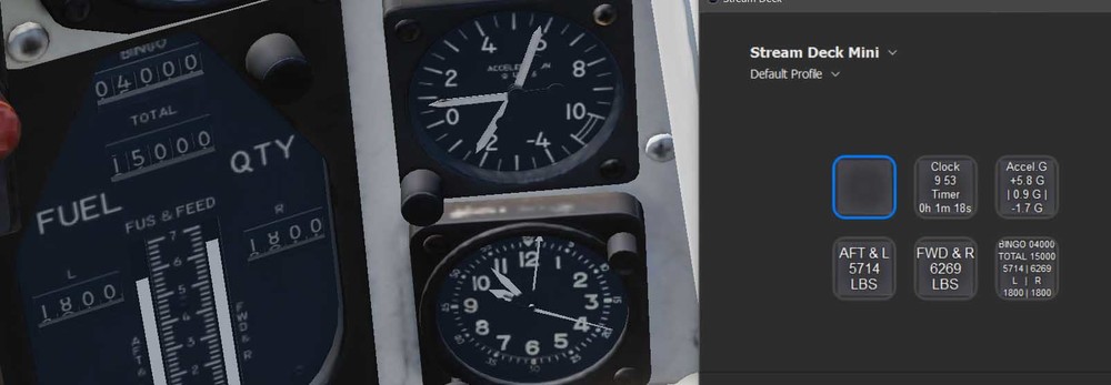I also use the stream deck extensively and build profiles for it. Created the p-47 profile recently and now working on an F-14B profile specifically for the stream deck. f-14B example of tape gauge on stream deck: How I use the stream deck for my p-51: -
