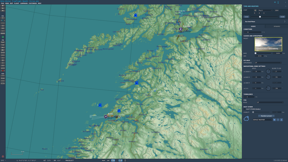 Not dismissing that other people aren't seeing it, just sharing screens to help show it. Two visible "seams" to the cloud layer looking different directions. Information bar included in shots to help narrow down location/direction to look. Also included a screenshot of the Mission Editor setup for any further setup parameters that might be needed. As mentioned, it's far less apparent than the shot I originally quoted, so if this lesser example is expected or normal that's okay with me too, just appeared at first blush like the sort of thing that was being requested. Edit: also meant to add, I run zero motion blur inside of DCS.