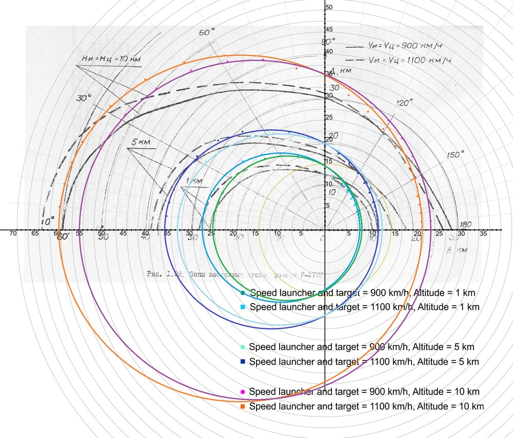 А почему ты не так критичен как обычно? Исходя из средне статистического графика ЗВП, западного, картинка другая. Тут одно из двух: 1) Советский график ЗВП сильно занижен и в ППС тогда ракета должна лететь значительно дальше, имея такую азимутальную дальность, то есть имеются ограничения по ракурсам 0, 180 при захвате и сопровождении. То есть поражать цель в крайних точках ЗРП ППС и ЗПС на скорости я не знаю там, 2,5М; 2) Программа ЗРП не верная, это косяк, с которым действительно нужно в Сухой идти, без шуток. Мне прокомментировали так: С Др Макс сложно поразить, так как цель менять скорость и направление и вероятность промаха существенная, в азимутальтных направлениях все ещё сложней» - все логично, но вроде бы как должно быть легче, раз у нас такой «фактический прирост» с азимутов. Эту разницу в процентах я посчитал исходя из логики ЗРП < ЗВП (исходя из почти круглой формы зоны азимутальные направления считаю странными) чтобы попытаться понять логику СУВ (определить чем руководствуется, найти зависимость). То есть вроде как со снижением высоты 10->5 увеличивается расхождение с дальностями ЗВП и в ППС и ЗПС, логично казалось бы, там воздух плотнее, помехи от земли растут и т.п., допустим делают запас. Но на высоте 1км расхождение в ППС самое минимальное, в ЗПС ещё увеличилось. Разрыв логической цепочки. Одним словом, считаю, что твоё утверждение по поводу «это логично если диаграмма ЗРП внутри ЗВП, а это не так» не верно. То есть проверять программой ЗРП настройку ракет не правильно, азимутальные направления не выдерживают критики, а по ППС и ЗПС недолеты по ЗВП укладываются в книжку Федосова, а так же в твои выводы от 2013г. Одним словом диаграмма ЗВП единственный более менее вменяемый документ.