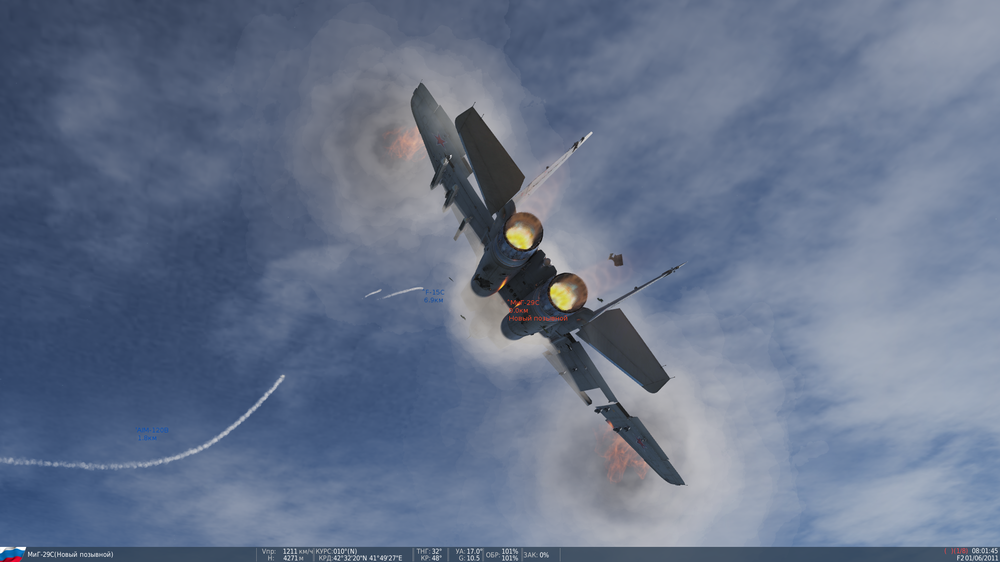 1) Должен выходить на такой угол атаки и разрушающую перегрузку? 2) Повреждение двигателя на скоростях более 2,6М происходит всегда (или случайным образом) или условия какие-то определенные? Развалился на 19.5.trk -