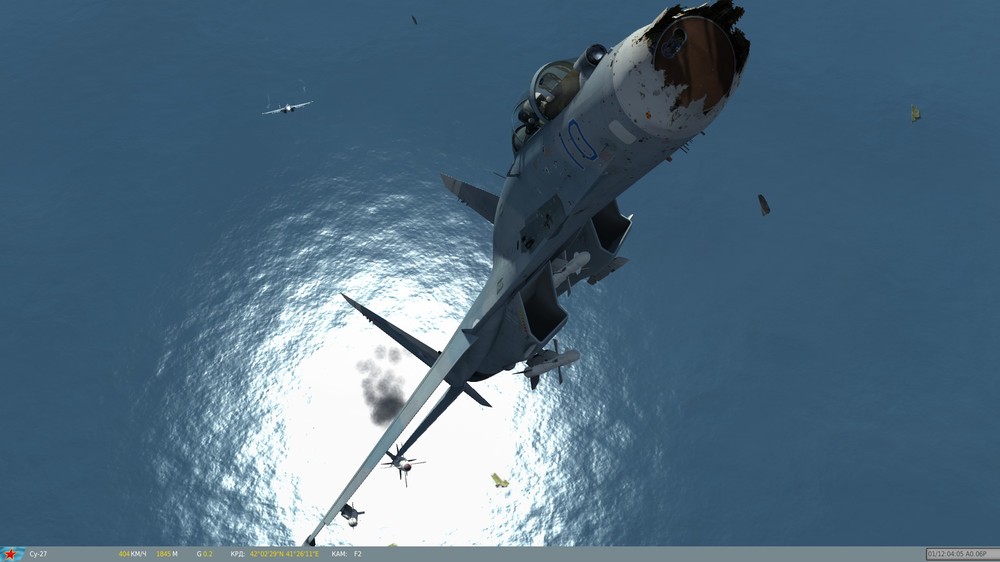 Пару раз отбомбил по РКР "Москва" фаб 500 и бетаб 500 по 6 шт. Визуально легли все кучно, корабль получил повреждения - в месте попадания пробоина и пожар. В логе Су-27 применил 1 бомбу - про попадания поразил 1 бомбой или даже вообще нет попаданий. Из строя он не вышел. Сколько вешать в граммах? Или баг? Или я не совсем точно попадаю (были всплески), а картинка обман -просто так рисуются эффекты? PS: Раньше помню всплески значили промах, т.е. если все легли - просто взрывы о корабль без всплесков... UPD: Чудеса смотрел второй раз трек. чтоб скрины сделать - в логе было Су-27 применил ФАБ 500 (6) - про попадания - поразил ФАБ 500 (12), но на результат не повлияло - корабль отстреливался со всех орудий. Позже трек не сошелся - сбил меня, второй раз сошелся :doh: PS: Получается 6хФАБ500 мало чтоб сломать его хотя бы... У корабля раньше было 3 состояния: целый- поврежденный (не стреляет но излучает) - уничтожен (происходит взрыв и тонет какое-то время) - сейчас так? PS1: ЧОрт! Как же красиво! :)
