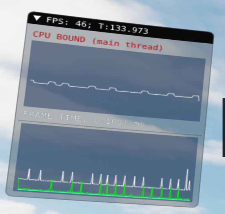 I did some testing between WMR/SteamVR, ST/MT, 60/90Hz display setting and several aircraft on a naked map. Best results i've got was when i used multithreading with WMR as runtime and limited the display refresh rate to 60 Hz. The stuttering and switching between CPU bound main thread and CPU bound render thread always happend when i set the G2 to 90 Hz or when i used SteamVR and the AC wasn't a F-16 or F-18. It seems like DCS has some issues in VR when the display frame rate can't be achieved and the render and main thread fight over mutex locks. The stuttering can be seen in the graph below. AC ST 2D MT 2D FPS FPS limit theo. FPS F-16CM 125 138 GPU bound 490 F-15E 110 122 GPU bound 380 F-18C 123 137 GPU bound 470 F-14B 108 121 GPU bound 310 AC ST/VR(WMR) 60Hz MT/VR(WMR) 60Hz ST/VR(SVR) 60Hz MT/VR(SVR) 60Hz FPS FPS limit FPS FPS limit F-16CM 55 60 CPU bound rendering 55 60 CPU bound rendering F-15E 50 60 CPU bound rendering 50 45/60 CPU bound rendering/main thread extremely shaky F-18C 55 60 CPU bound rendering 55 60 CPU bound rendering F-14B 50 60 CPU bound rendering 50 45/60 CPU bound rendering/main thread extremely shaky ST/VR(WMR) 90Hz MT/VR(WMR) 90Hz ST/VR(SVR) 90Hz MT/VR(SVR) 90Hz FPS FPS limit FPS FPS limit F-16CM 52/53 64 CPU bound rendering/main thread shaky 53 56/60 CPU bound rendering/main thread extremely shaky F-15E 50 56/60 CPU bound rendering/main thread extremely shaky 50 53/56 CPU bound rendering/main thread extremely shaky F-18C 52/53 64 CPU bound rendering/main thread shaky 53 56/60 CPU bound rendering/main thread extremely shaky F-14B 50/51 60 CPU bound rendering/main thread shaky 50 53/56 CPU bound rendering/main thread extremely shaky