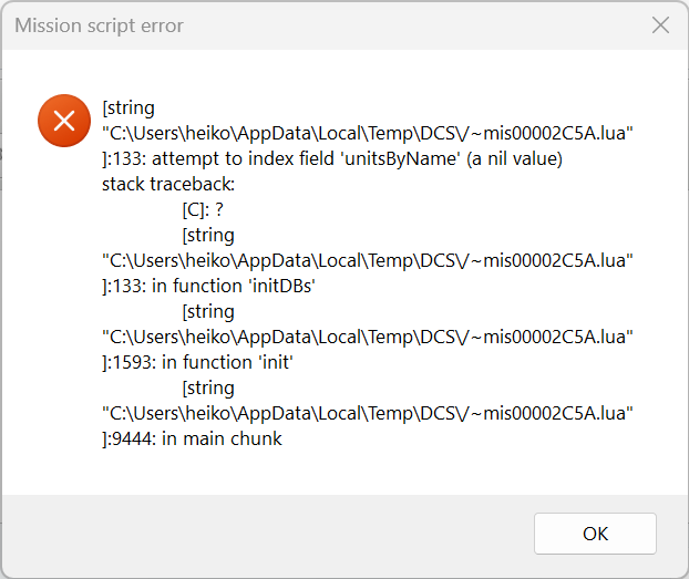 Having a Zone with the new linke unit feature kills MIST scripting. My best guess would be that it will cause deep copy to loop, but that's just a plain guess ... DCS DCS 2.9.0.47168 MIST 4.5.118 null dcs.log LinkeZoneBug.miz