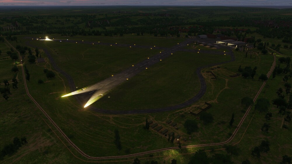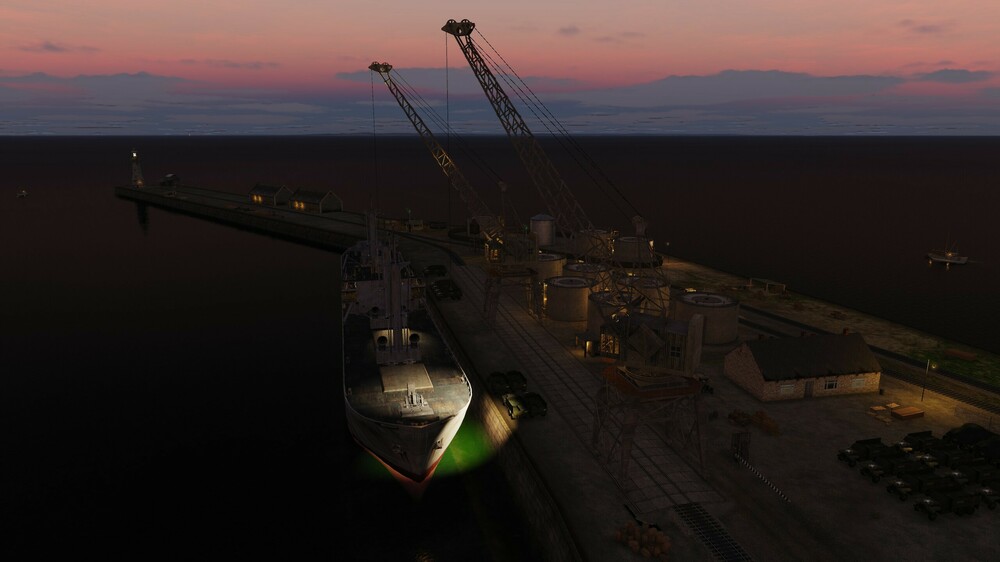 Hi In this topic, we will separately talk about lighting. We carefully approached the fact that flights at night would be interesting and tried to create a balance between the complete darkness that was during the war and peacetime, when Paris and London at night were the most beautiful cities in the world. Light is important, it creates atmosphere. When creating airfields, various types of airfield lighting systems were used. Germany and the Allies used different systems. If on the original objects the light emphasizes the beauty and visibility of the building, then in the ports it shows what hard and continuous work goes on when loading goods and equipment. Lighthouses and railway stations are brightly lit and you can navigate them. 1944 - war, so blackout rules were applied on the territory. To accommodate various scenarios, we have made it so that the night lighting is turned on by setting the date in the mission: June 1945 and later. Keep this in mind when creating missions and when creating a free flight. ---- before June 1945 - lights OFF after June 1945 - lights ON ---- We use "dynamic light" that illuminates objects in real time, it gives a little more realism and is just beautiful. The main types of light sources are omni and spotlights with physically correct attenuation. To reduce the load on the GPU, working distances were assigned to each type of light source: -City lights 3-6km -Searchlights on towers 8km -Lighthouse 42km -Lights on the runway 15km -Airfield lights 30km So, if you want to implement a scenario of approaching territories that have not yet introduced a blackout mode or just want to fly over a cozy night city - choose the date "June 1945 and later" and Normandy will light up with lights. We read all your messages and appreciate your comments and ratings. Beauvais-Tille airfield. France Orly airfield. France West Malling Airfield. UK Kenley airfield. UK Port of Dover Port of Le Havre Victoria Station London Paris Gare du Nord City lights in France City lights in UK