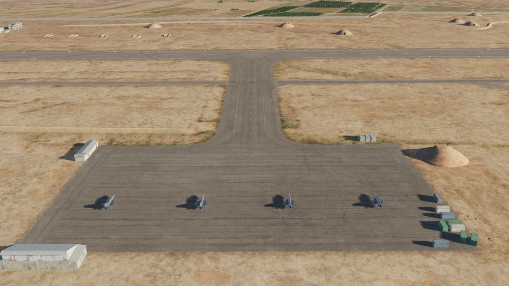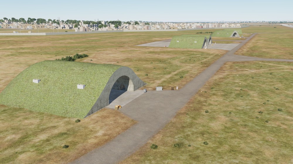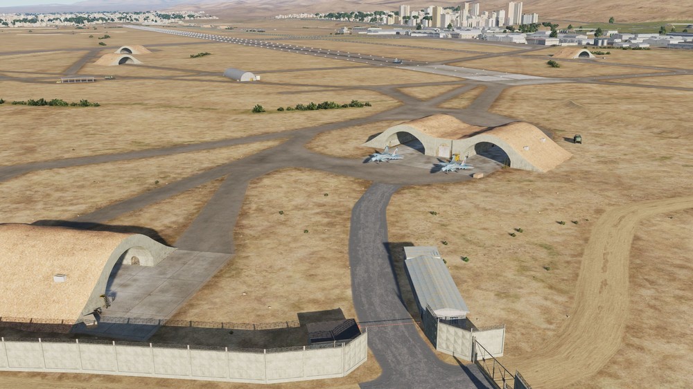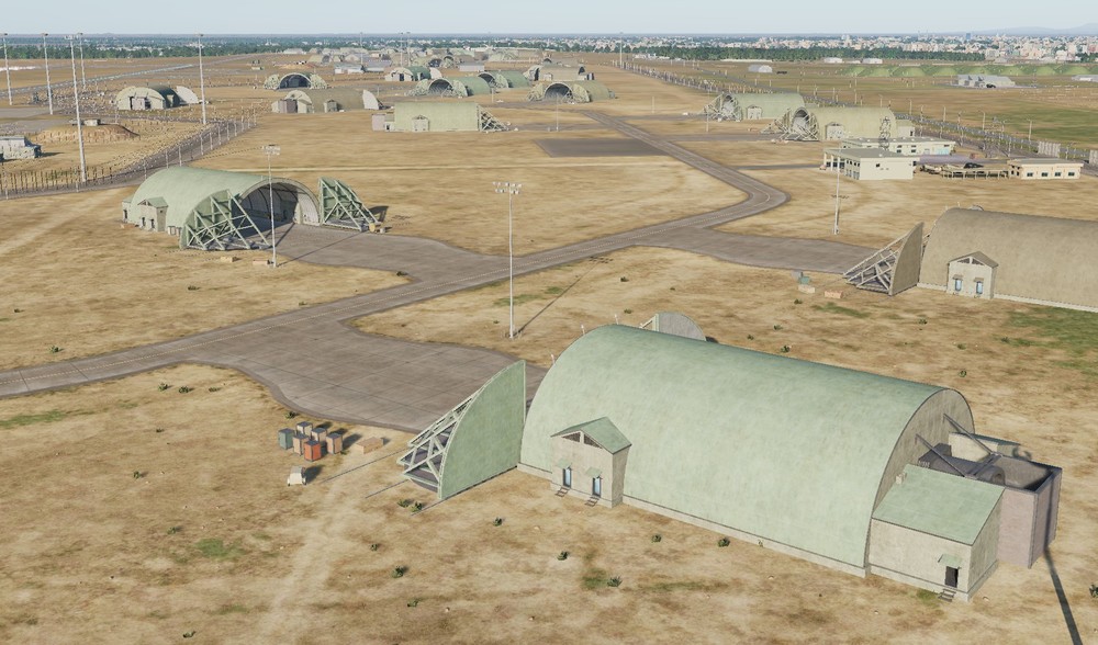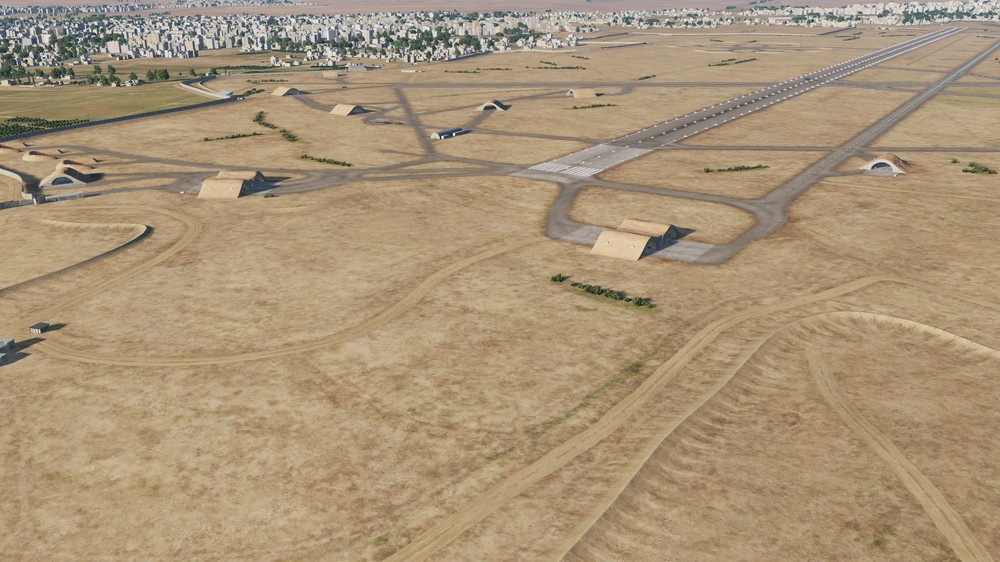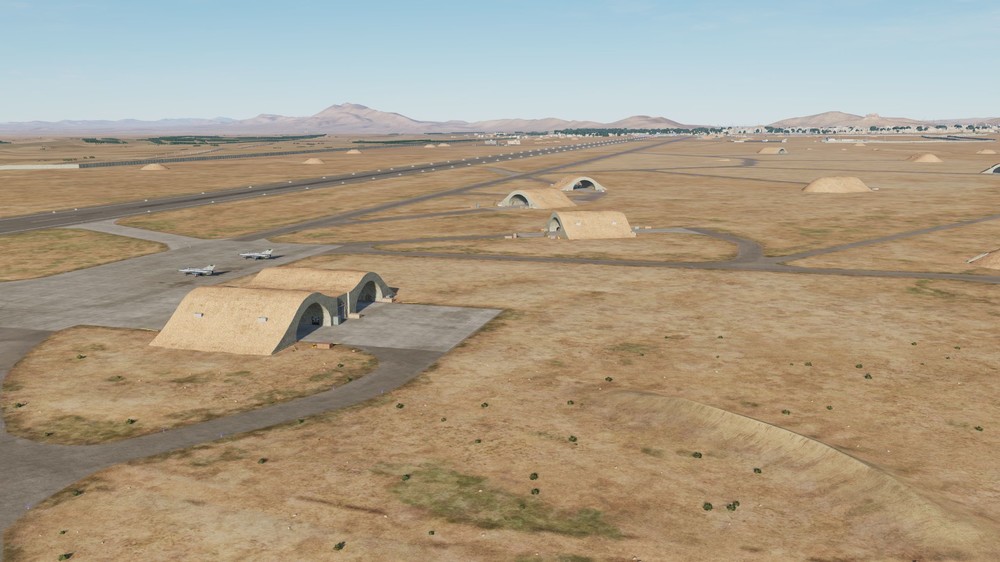Also important object of military infrastructure of DCS Syria project is Marge Ruhayil airfield. It is one of the largest military airfields in the Syrian Arab Republic, an essential element of the air defense of the Syrian capital. Already in the "Doomsday" war, the first large-scale Arab-Israeli conflict of 1967, MiG jets took off from this airfield. Marge Ruhayil was attacked by the Israel Air Force more often than other airfields. Su-22, MiG-19, MiG-21 and MiG-29 were based on this airfield at different times, and even the training and combat L39. All these aircraft are in the DCS arsenal and are available to our users. Marge Ruhayil military airfield has a runway 06-24 of 2985 m length with take-off/landing courses of 57° and 237°.