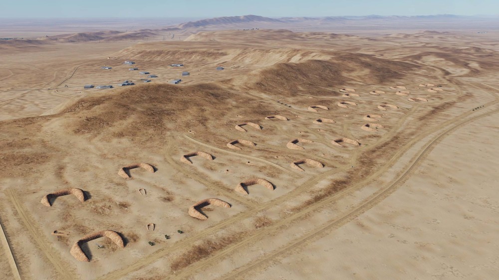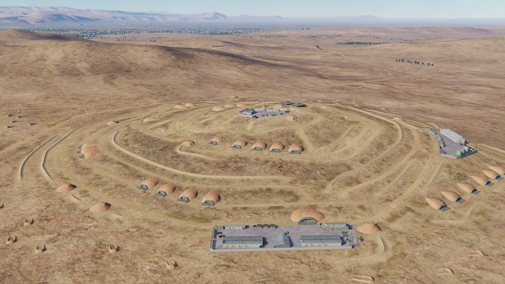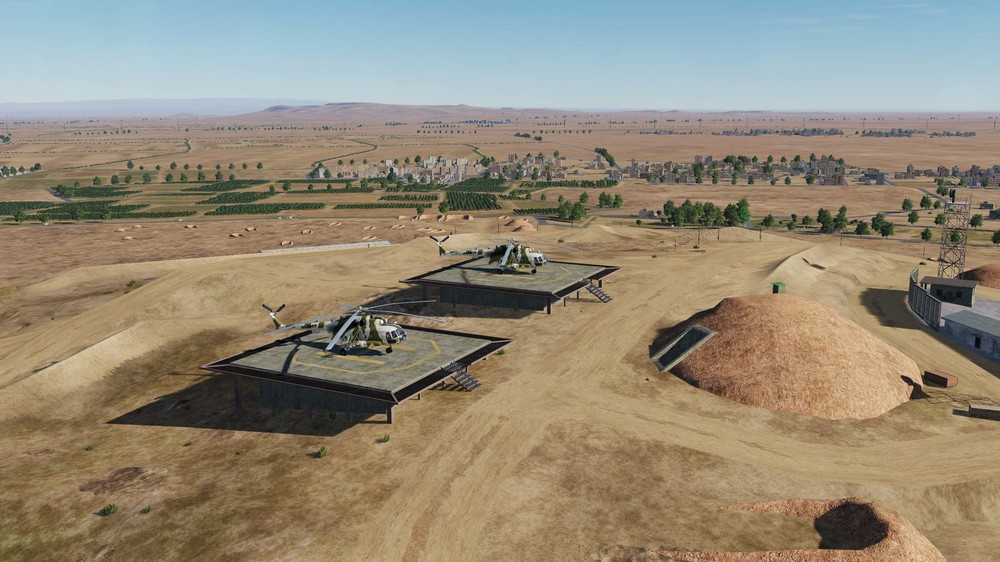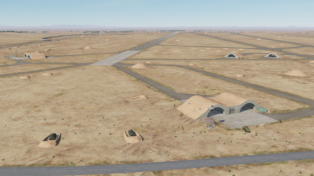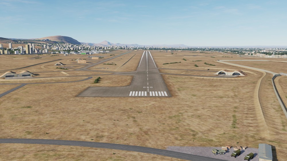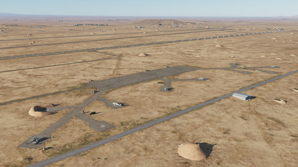 Also important object of military infrastructure of DCS Syria project is Marge Ruhayil airfield. It is one of the largest military airfields in the Syrian Arab Republic, an essential element of the air defense of the Syrian capital. Already in the "Doomsday" war, the first large-scale Arab-Israeli conflict of 1967, MiG jets took off from this airfield. Marge Ruhayil was attacked by the Israel Air Force more often than other airfields. Su-22, MiG-19, MiG-21 and MiG-29 were based on this airfield at different times, and even the training and combat L39. All these aircraft are in the DCS arsenal and are available to our users. Marge Ruhayil military airfield has a runway 06-24 of 2985 m length with take-off/landing courses of 57° and 237°.