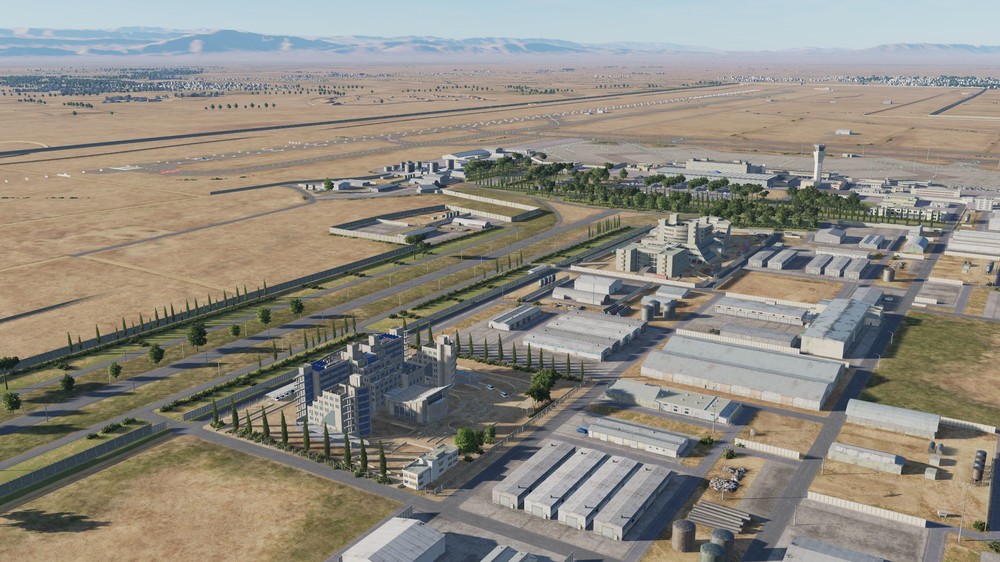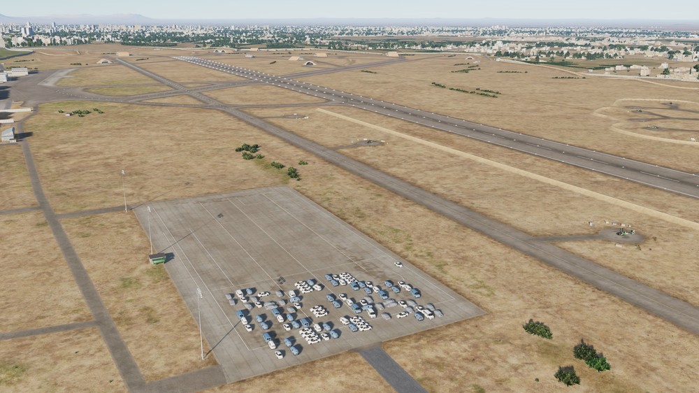 Today we will show three large Syrian airfields of DCS Syria project, which are going through the final stage of debugging and testing. Damascus International Airport. It is one of the largest airfields in the Middle East. In peacetime, its services were used by over 5 million people annually. But both in the 20th century and nowadays, not only civil planes land at this airfield. And today, there are several squadrons of Syrian Air Force armed with MiGs of Soviet construction in capons at this airport. Also at this airfield are based more modern MiG-29 of the Air Force of Iran, which often supports combat operations of the Iranian army, which, in turn, is an ally of the Syrian government troops. Damascus International Airport has 2 parallel runways: 05L-23R and 05R-23L for 3600 m each. Take off/landing courses: 045° and 225°.