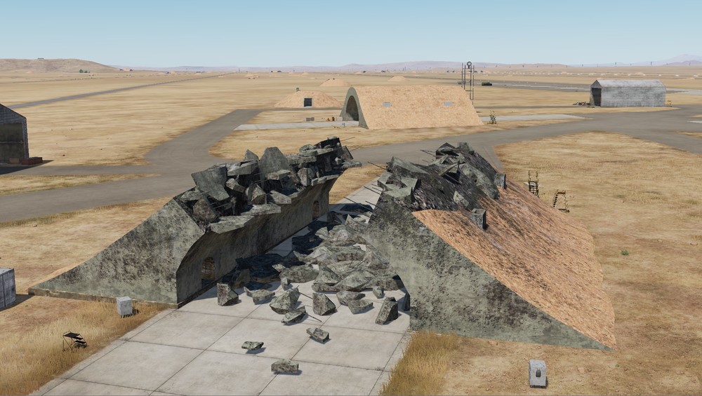 On the map of Syria, the war started thousands of years ago and has not stopped here since. Even today, in the 21st century, the territories of the Middle East represent an arena of armed confrontation between different states and national and political entities. Therefore, in developing the map, special attention was paid to military aspects. Last week, we published a list of military bases and screenshots of several of them. This time we show models of destruction of urban, industrial and airfield facilities. This result should make the missions on the map of Syria particularly interesting and spectacular. Models of destruction of airfield facilities: