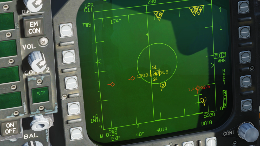 When F18's A2A radar(tws mode) establish a target's trackfile for the first time. There is a significant chance that the contact would stuck at a impossible speed for up to 3-4 seconds.When memory time is set to 2 it even fail to bug the target(switch to tws auto).