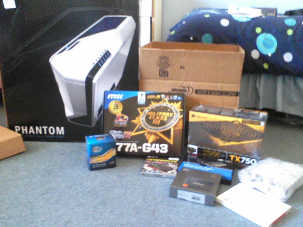 Thanks for all the help guys, couldn't have done it without you! I recently finished, and everything is working great! I was worried for a while, I was finishing the build late at night and I couldn't get it to turn on, I thought something might have been broken. But when I woke up the next day I realized I accidentally put a PCI-e 6+2 connector into the CPU port instead of the 4+4:doh: So I fixed that up and now all the ladies are impressed with me, so thanks. Also, here's a few low quality pictures from my phone so you can see my awesome work.