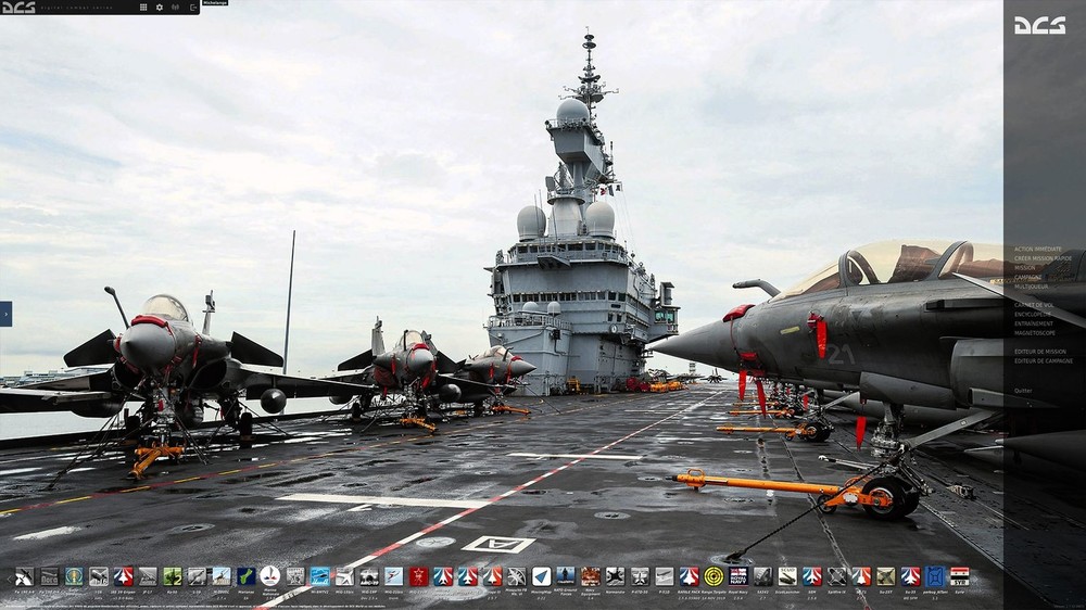 Marine Nationale Adds : - Encyclopedia - 2560x1440 Pictures - Icons - New lua files. To compile You have to download the following vessels : - from ADMIRAL189'S CORNER : https://forum.dcs.world/topic/241974-admiral189s-corner-incoming-ship-models/ 14: FREMM Aquitaine D650 Class Frigate - from sushy73 SNLE Le Redoutable : https://www.digitalcombatsimulator.com/fr/files/3321383/ - from the Cuesta brothers CLEMENCEAU CLASS version 004 : https://forum.dcs.world/topic/259421-clemenceau-class-version-004-and-super-etendards-pack-2021-272-by-the-cuesta-brothers/#comment-4544785 NEW Charles de Gaulle : https://forum.dcs.world/topic/258134-new-charles-de-gaulle-2021-version-003-for-271-by-cuesta-brothers-industrie/ Durance : https://www.digitalcombatsimulator.com/en/files/1546536/ La fayette an Mistral are from Dams vehicle mod, it's a bit difficult to extract the right files and pack it, that is why i added it in the package. You dont have to dowload this mod. It's up to you to use it or not ! There are readme files in each directory for instruction ! Link for the moder pack without textures and 3d models is here : https://transfert.free.fr/3UUg6A Link for the complete pack with models and textures to place in .../saved games/DCS/ : https://mega.nz/file/z4NzVbRQ#2k6RA0oy_9zIoEdqqbiX8InlXbGJnBPgQqJUkN-cWB4