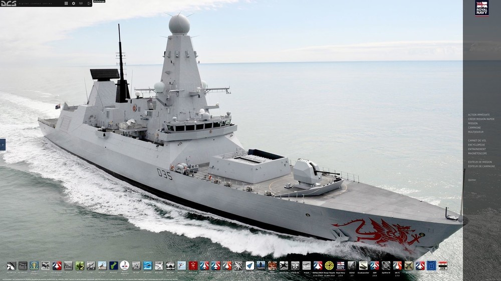 Royal Navy Adds : - Encyclopedia - 2560x1440 Pictures - Icons - New lua files. To compile You have to download the following vessels : - from ADMIRAL189'S CORNER : https://forum.dcs.world/topic/241974-admiral189s-corner-incoming-ship-models/ 12. HMS Duncan D-37: Ver 1.0.1 18. HMCS Montreal FFH-336 vers 1.0.7 - from T-Pap, HMS Ocean / NAM Atlantico : https://www.digitalcombatsimulator.com/en/files/3318835/ - From Joey45, HMS Hermes : https://www.digitalcombatsimulator.com/en/files/3313777/ https://www.digitalcombatsimulator.com/en/files/3313776/ Look the readme files for instructions. Link to this theme without textures and 3d models for moder : https://transfert.free.fr/dwSew9 Link to the complete pack with models and textures to place in .../saved games/DCS/ : https://mega.nz/file/ilETEATI#2wuvDas4vQ02JUnW4h6jLKtvxbS_2UQVQfbRhVuU88Q