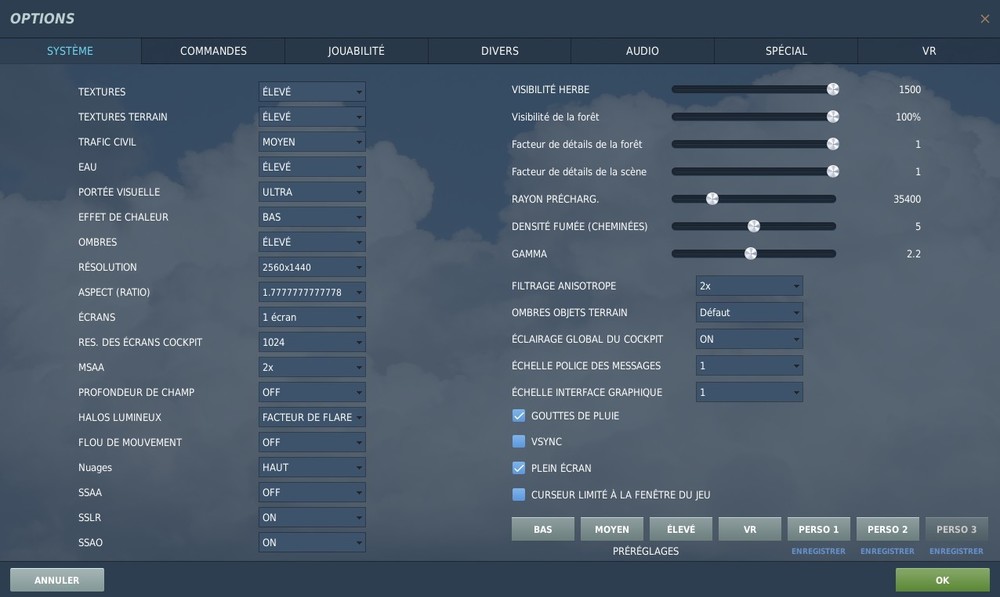 Bien le bonjour ! Je suis sur DCS depuis 7 ans maintenant, et j'ai une machine qui me permet de le faire tourner très bien sur mon écran 38 pouces. MSI B550 Gaming Plus RTX 3070 8Go Vram 64 Gb RAM 4000 Ryzen 7 5700X3D Depuis quelques mois, je possède le Quest 3. J'ai donc très logiquement testé DCS et je trouve le rendu globalement décevant. J'ai pu progressivement obtenir des performances correctes en jouant sur les paramètres du PC, les réglages graphiques NVIDIA et dans DCS, et le FOV avec Oculus Tray Tool. Mais je rencontre 2 soucis : le cockpit n'est pas très lisible (cadrans, chiffres assez flous, il faut que je rapproche pour voir bien), et l'extérieur du cockpit semble aussi peu clair. J'ai pourtant 72 FPS et en survolant une forêt par exemple, c'est bien. Ca baisse quand il y a du trafic et du détail au sol. Mais si je dois identifier des unités au sol par exemple, ou identifier un appareil en vol ami ou ennemi, c'est impossible tant c'est moche. J'ai parcouru en long et en large les tutos YT pour optimiser le Quest 3 et je crois que je m'en sors pas mal, mais : Ne serait-il pas opportun de procéder à un upgrade matériel ? Je pense à passer à une 3080Ti (une occasion se présente en ce moment chez qqn qui passe à la gamme 4000), ou à upgrader le CPU. Quel est selon vous le facteur limitant ? De mon côté, je dirais la CG parce que sur DCS elle est toujours à 100% (même sur écran où tout va très bien elle affiche 100% d'utilisation). Par contre, j'ai vu sur que j'aurais un bottleneck dû à mon CPU. Je lis aussi par ailleurs qu'il ne faut pas s'y fier... Donc je suis un peu perdu. Est-ce que maintient la config actuelle en essayant d'optimiser encore l'ensemble ? Est-ce que j'upgrade le CPU (si oui, pour lequel en AM4) ? Est-ce que passe à la 3080 Ti que j'ai vu en seconde main (pour 470€) ? Sachant que mon budget est grand max à ce montant de 470€. Merci d'avance !