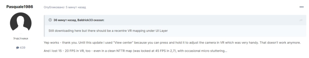 Ну что, погонял 4090 два дня, пока впечатления такие: Настройки в VR теперь практически равны настройкам для 2д: можно использовать тени, MSAA x4, или апскейл + MSAA x2. Стабильные 45 все равно вывозит. Ну или как вариант без апскейла c низкими тенями и MSAA x2 но и 90 (правда эти все равно вывозит не везде). Плавность значительно возросла, с open composite не нужна никакая репроекция. Теперь всё упирается в процессор, практически везде небольшой но "CPU bound" в оверлее open composite от 1 до 10 мс "отставания" от видео. Думаю, что это не особо влияет на производительность. Пока проц менять точно не буду - подожду релиза multicore. В целом согласен с @iyhan_spb - плавность офигенная. З.Ы. Что самое забавное стим вр работать с высокими настройками не хочет - сжирает все 24 гб видеопамяти, начинает лагать и вылетает через 5 минут полёта. З.З.Ы. Апач и Марианны с Сирией ничто не победит.