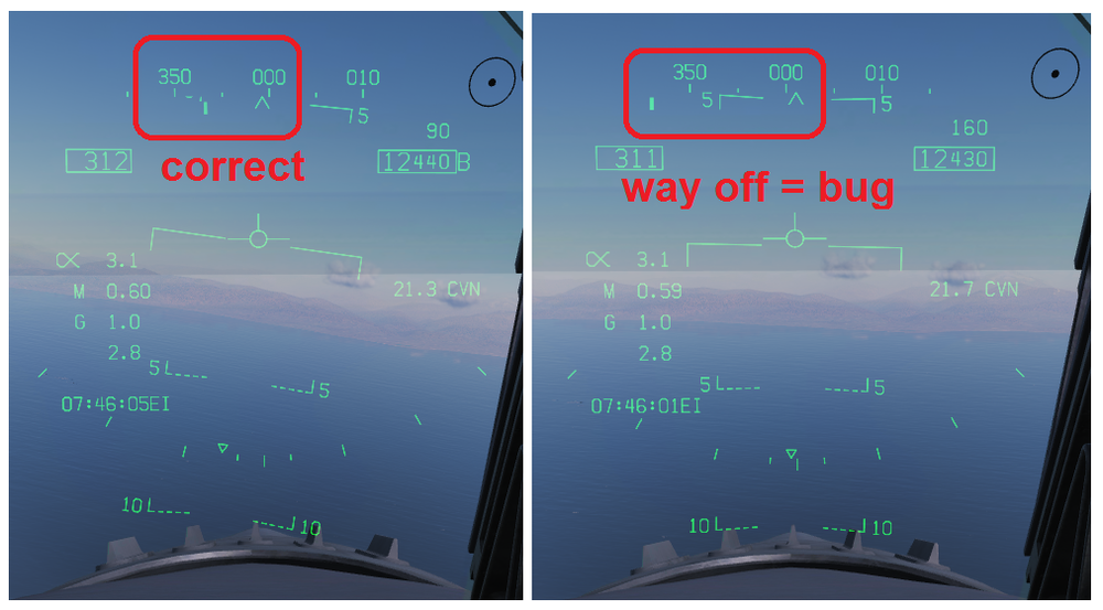 When I fly north in direction of TACAN station, which is for expample heading 353°, if my actual heading is 002°, than tacan indicator showed full left (less than 350). When I cross 360° and fly for example 358°, than the heading indicator jumps into correct position.