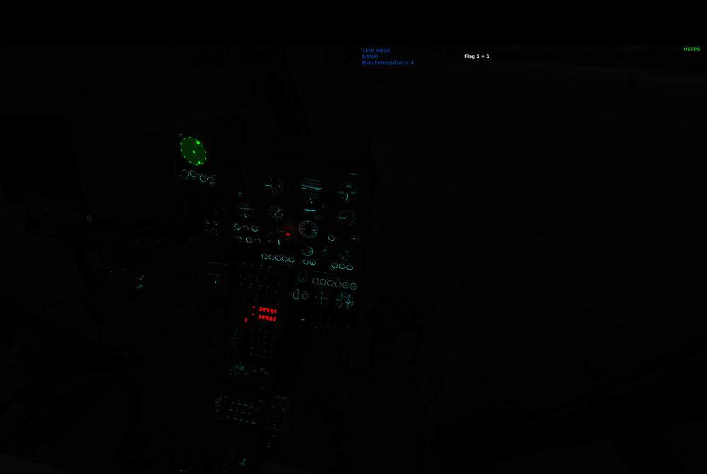 Hey, I tried out the NVG on the Gazelle and there is a strange behaviour. Sometimes the NVG Vision is really bad. I start the mission, jump in the Heli (HOT) and toggle the NVG. I noticed that the cockpit lights differs too in that two cases. I don't tuch anything after starting the mission. 1. Picture: NVG working 2. Picture: Cockpit Lights 3. Picture: NVG not working 4. Picture: Cockpit Lights dim Any suggestions? NVG Working Cockpit lights NVG not working Cockpit lights dim