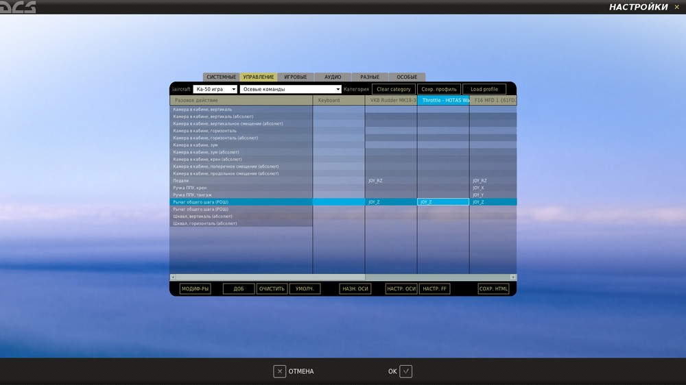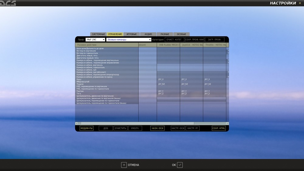 Неее. Не было ничего 100%. Как переустанавливал DCS World после попытки перенести на Steam, так вообще не лазил с тех пор, по крайней мере настройки самолетов по осям точно не трогал. Настройки старые во время удаления, тоже затер, то есть по итогу чистая установка была. Единственное, что Warthog недавно подцепил, думаю, что после этого по осям чума возникла - все оси перемешались. Педали ВКБ к примеру некоторые оси не поддерживают, но прописаны. Понимаю, что сложно для каждого устройства прописать дефолтные настройки, но по итогу выглядит вот так (к сведению).